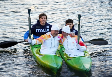 Antonio Rossi tedoforo... in canoa con Bonomi a Milano
