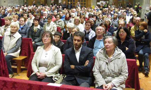 Una Chiesa Parrocchiale gremita di persone di ogni età ha accolto nella serata di ieri, mercoledì 5 ottobre, il Cardinal Angelo Scola, giunto a Valgreghentino in occasione del 450° anniversario di fondazione della Parrocchia, dedicata a San Giorgio Martire.
