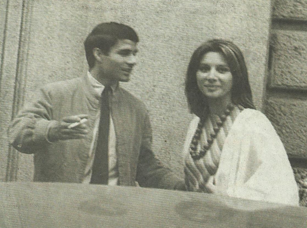 Nino Castelnuovo e Paola Pitagora fotografati a Lecco, davanti all’allora palazzo Falck, in piazza Garibaldi