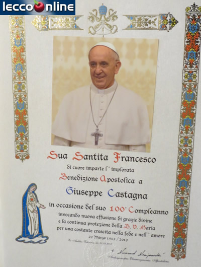 Don Gianni ha poi consegnato al centenario civatese una pergamena con l’immagine di Papa Francesco che impartisce la benedizione apostolica augurando “una costante crescita nella fede e nell’amore”.