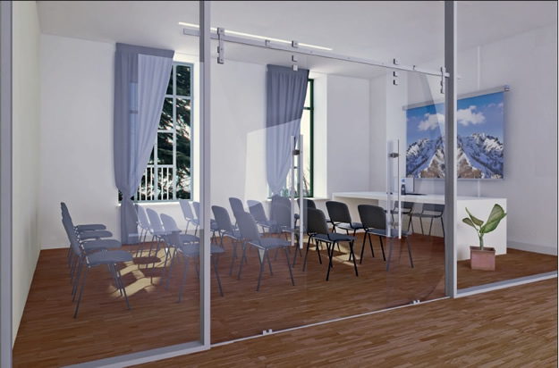 Un luogo, insomma, fortemente vivo e aperto al territorio, per la cui ubicazione si è scelto, non casualmente, un asilo, caratterizzato da spazi interni luminosi e ampi, nei quali a predominare saranno materiali “leggeri” come il vetro, il legno e il cartongesso.