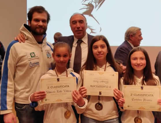 Nella giornata di ieri, domenica 5 maggio, presso il prestigioso auditorium Testori di Palazzo Lombardia a Milano, tre giovani sciabolatrici sono state premiate nel corso della festa regionale della scherma alla presenza del presidente CRL-FIS Maurizio Novellini, dell'assessore regionale allo sport Martina Cambiaghi, e di altre autorità del Coni tra cui il presidente Oreste Perri e personalità della scherma regionale e nazionale come Sandro Resegotti, due volte oro mondiale a squadre nella spada maschile e attualmente Maestro presso il Circolo Mangiarotti di Milano.