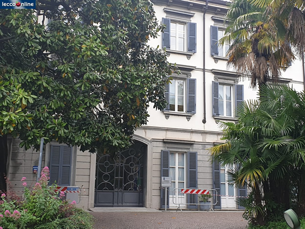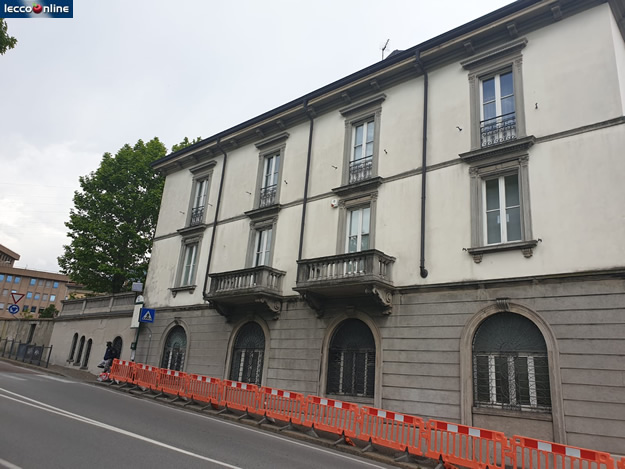 Villa Locatelli da qualche giorno è stata... cinturata. Transenne posizionate ai lati dell'ingresso principale, sul cortile interno, impediscono di passare rasente al muro perimetrale. Vietato il passaggio, all'esterno, anche sul tratto di marciapiede su via Volta in corrispondenza della storica dimora sede della Provincia di Lecco.