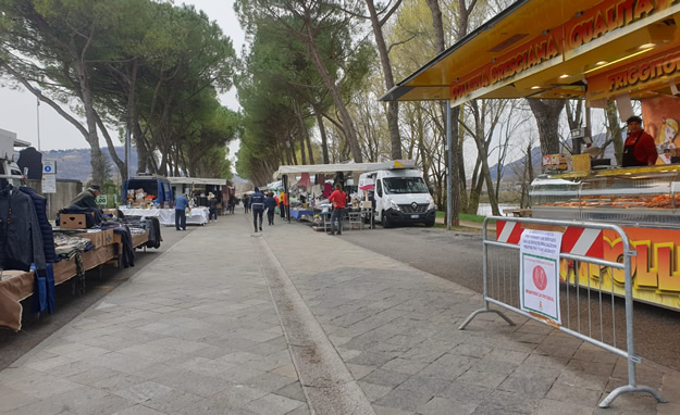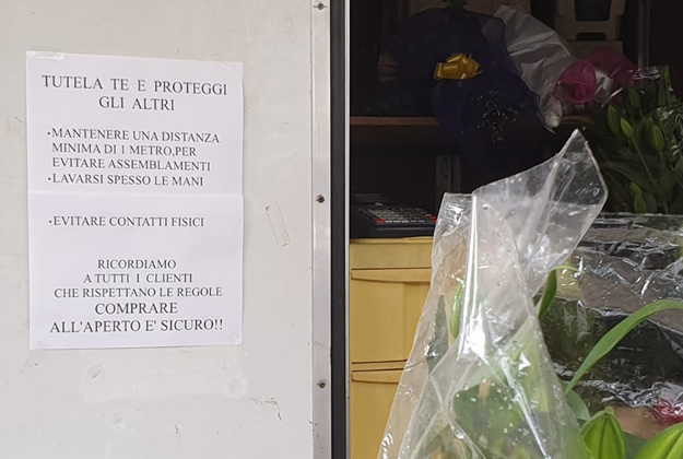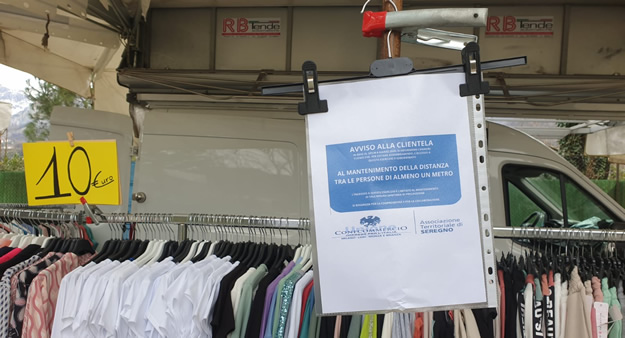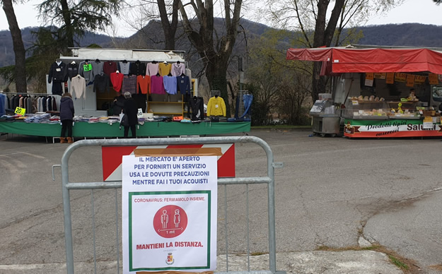 Si scherza, tra venditori, sul metro di distanza e su quelle precauzioni richieste. Le prescrizioni sono ricordate dai cartelli affissi dall'amministrazione comunale e dai singoli ambulanti, alcuni dotati di prestampati dell'associazione di categoria altri di cartelli realizzati d'iniziativa, arrecanti anche frasi di "incoraggiamento" come "comprare all'aperto è sicuro".