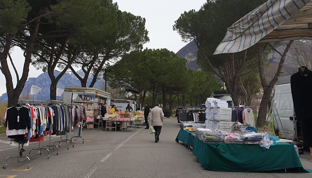 I pochi acquirenti presenti camminano veloci – molti con la mascherina o con la sciarpa alzata, come a voler tutelarsi, anche se solo psicologicamente – diretti verso la bancarella di riferimento, spesso e volentieri per comprare quello che manca in dispensa o nel frigorifero. Nessuno (o quasi) pare avere voglia di dare un occhio ai giubbetti primaverili color pastello ben allineati sulle grucce o di approfittare delle ultime occasioni in saldo. “A questo punto forse è meglio che ci dicano di chiudere del tutto, così tanto non lavoriamo comunque” il commento di un esercente. “Ma che chiudano tutto tutto, assicurandoci rimborsi” gli fa eco, con riferimento polemico ai centri commerciali, il vicino che, oggi, tanto vicino non è.