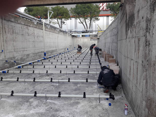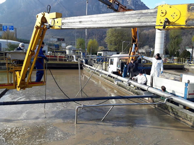 La posa dei soffianti nella vasca di digestione biologica