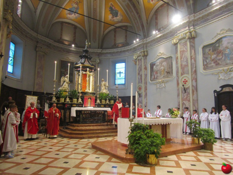 Don Andrea al centro fra sacerdoti e chierichetti