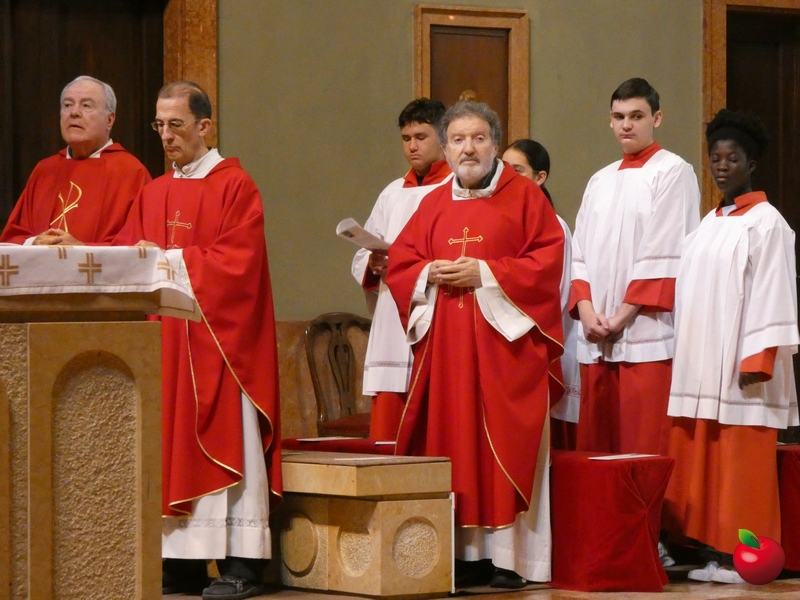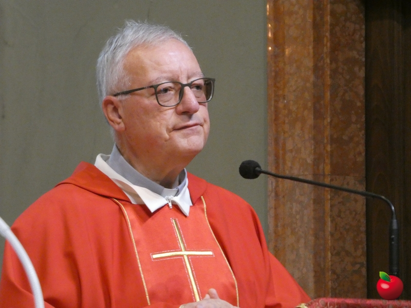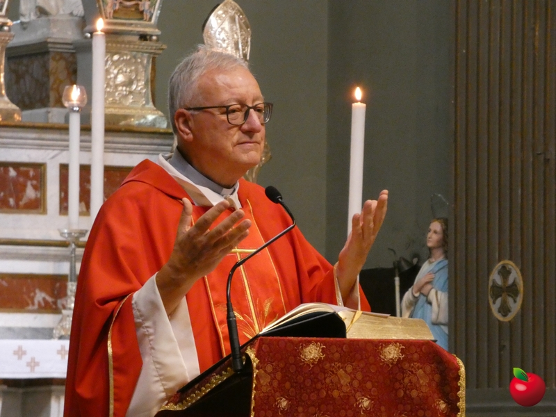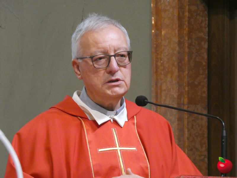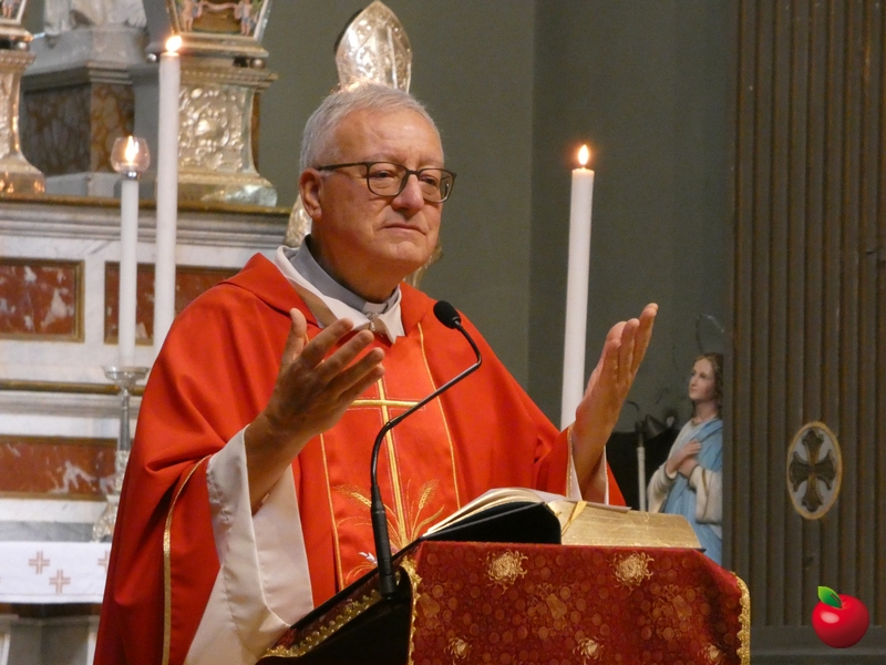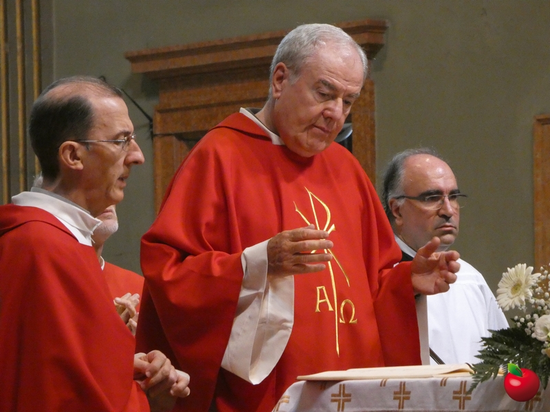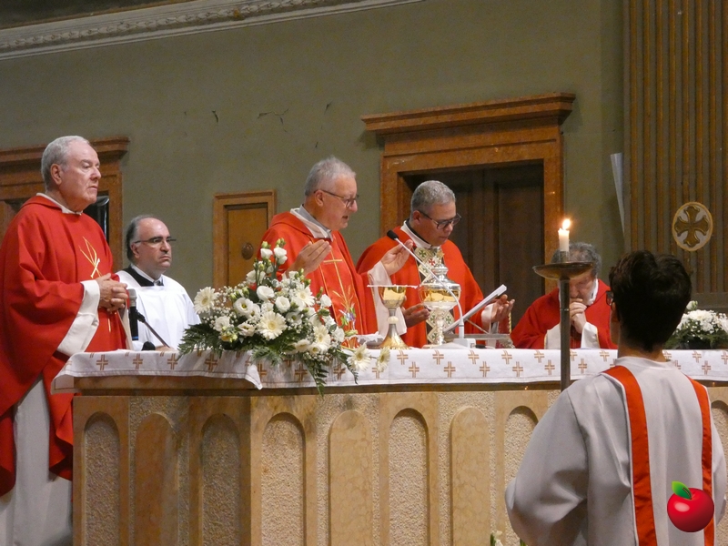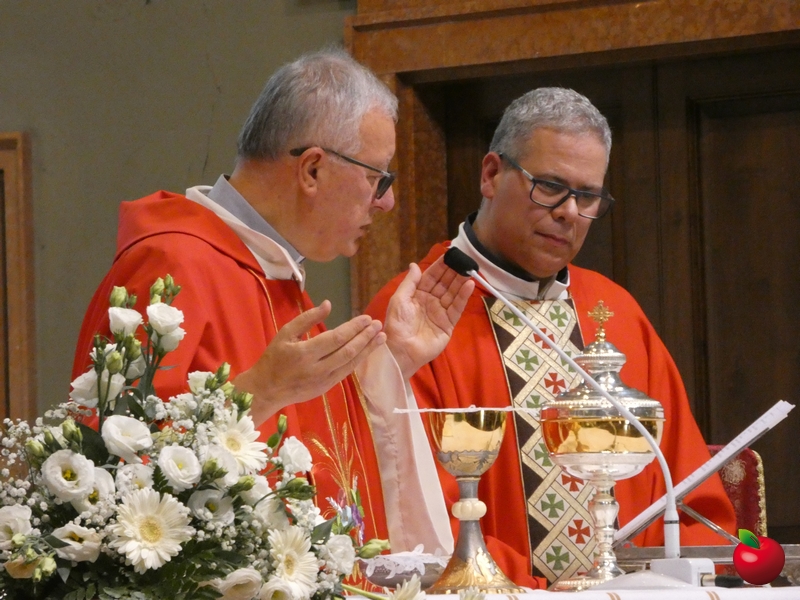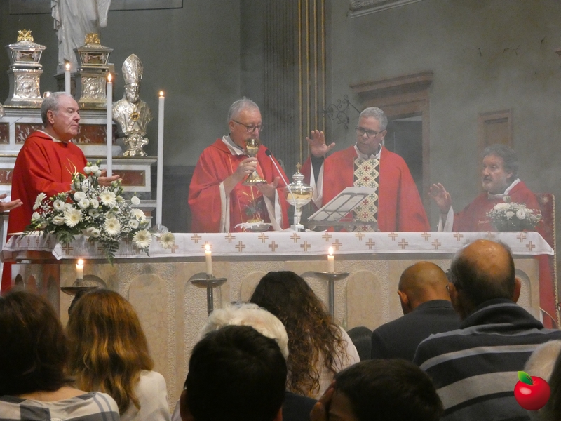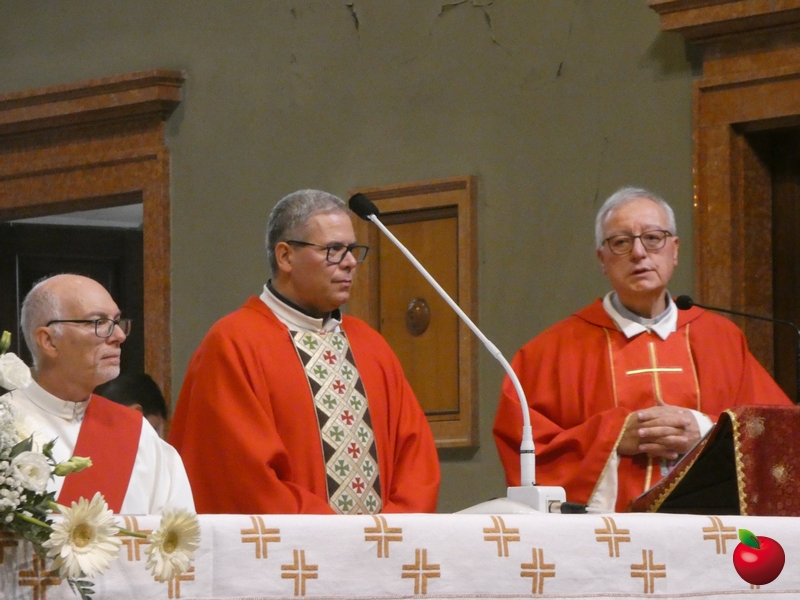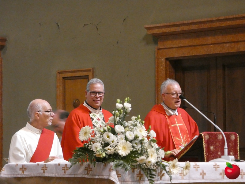 "Oggi - ha detto nelle prime battute - vogliamo dirci che per salutarci dobbiamo considerare gli occhi, la lingua e le ginocchia. Siamo qui - ha aggiunto parlando di sé in terza persona - per salutare don Giuseppe e don Claudio dopo anni ma la Liturgia ci obbliga a esaltare non i sacerdoti che partono la ma la Croce".