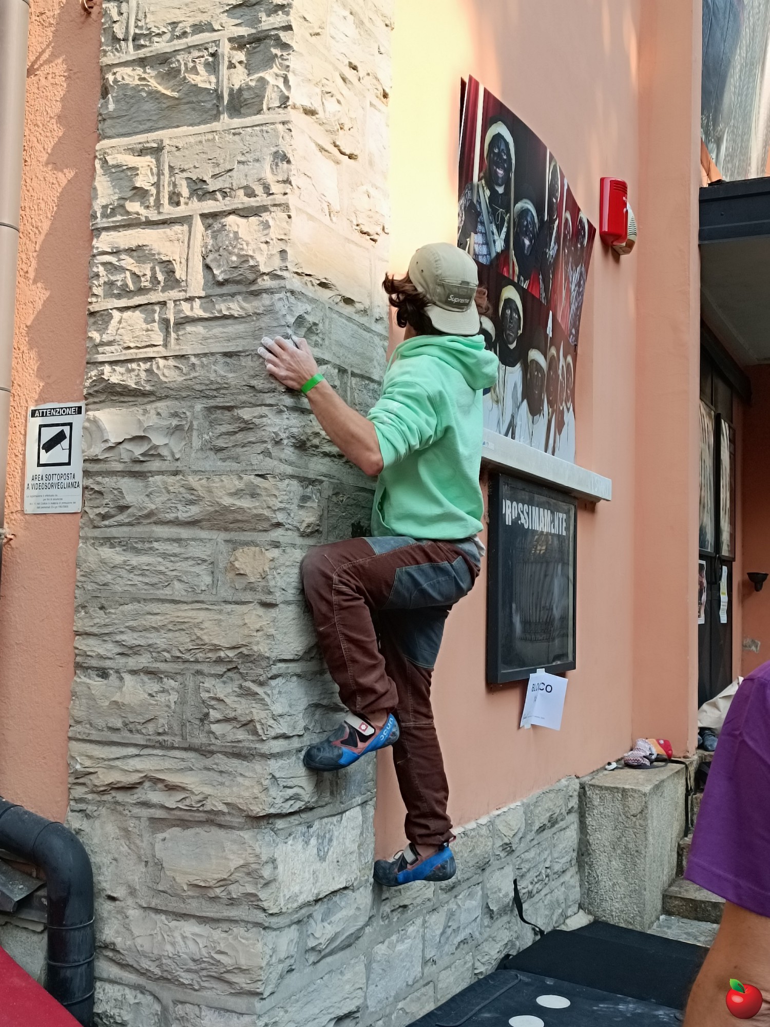 Partendo dal Palasole, dove si sono svolte le iscrizioni e la consegna della Be Boulder Bag, i partecipanti si sono distribuiti seguendo la mappa ricevuta al momento della registrazione, raggiungendo i vari blocchi indicati. Le sfide sono state affrontate esclusivamente con la forza di braccia e gambe, senza l’uso di corde. Giovani, adulti e anche giovanissimi hanno potuto arrampicare sugli spazi urbani offerti da Bellano, rispettando le regole della manifestazione e cercando di raggiungere il Top, ovvero il punto di completamento di ciascun blocco.