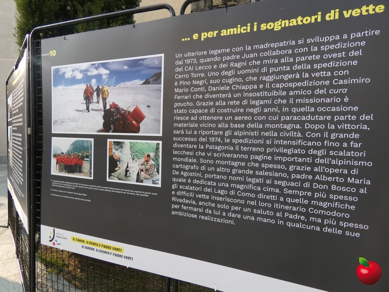 Ospitata negli spazi dell'Ossario della Chiesa di San Giovanni Evangelista, in Largo Indipendenza, l'esposizione "racconta" Padre Corti con una serie di pannelli, gli articoli di giornale a lui dedicati, in Italia come in Argentina, le sue stesse lettere - a cominciare dal diario di bordo tenuto durante la prima traversata verso il Sud America, a cavallo tra il 1948 e il 1949 - ed tre distinti filmati, l'ultimo dei quali girato a Comodoro Rivadavia, ai giorni nostri, per testimoniare come quanto costruito e avviato dal sacerdote anni e anni fa, sia ancora in uso, in perfetto stato, al servizio dei bambini e dei più fragili, come quando la missione era portata avanti dal galbiatese. Non stupisce dunque che, in questi giorni, anche nella città argentina, siano state organizzate iniziative in memoria di "Padre Juan".