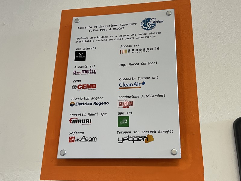 L’elenco delle aziende sostenitrici comprende AGG Stucchi, Access srl, A.Matic srl, CEMB, Clean Air Europe srl, Elettrica Rogeno srl, Fondazione Arturo Gilardoni, Fratelli Mauri spa, GBM srl, Softeam, Yetopen srl. A nome dei genitori, la rappresentante Paola Borracetti ha portato "riconoscenza per il lavoro svolto e l’impegno degli studenti".