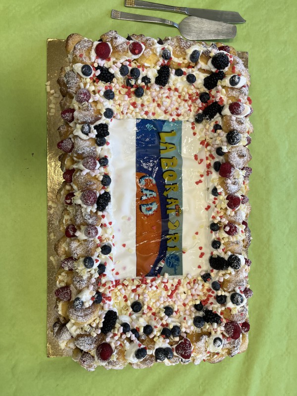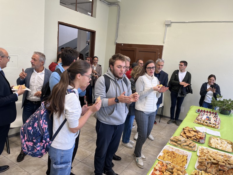 Dopo una visita al nuovissimo laboratorio, è stato offerto un buffet a cura dell’istituto, con tanto di torta raffigurante il murales progettato dagli studenti.