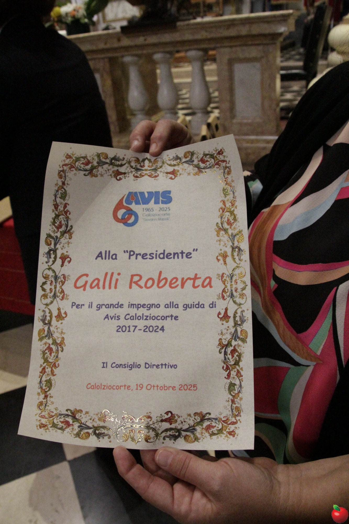 Al termine della funzione dopo i saluti istituzionali e la lettura di una poesia composta da Rinaldo Acerboni, è stata la volta dei donatori presenti salire sull'altare e ricevere la pergamena, con la medaglietta e il cadeaux e poi posare per la tradizionale foto di rito, prima di spostarsi in oratorio per il pranzo.