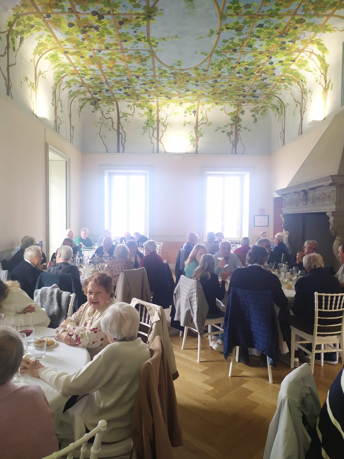 Al termine della funzione religiosa, gli ospiti si sono trasferiti nella magnifica ''Sala del Pergolato'' di Villa Cipressi, affacciata sui giardini e sul lago, dove li attendeva un pranzo conviviale preparato con cura. Il menù, pensato per valorizzare i sapori della tradizione locale, ha riscosso grande apprezzamento tra i commensali, che hanno potuto gustare piatti genuini in un clima di allegria e serenità.