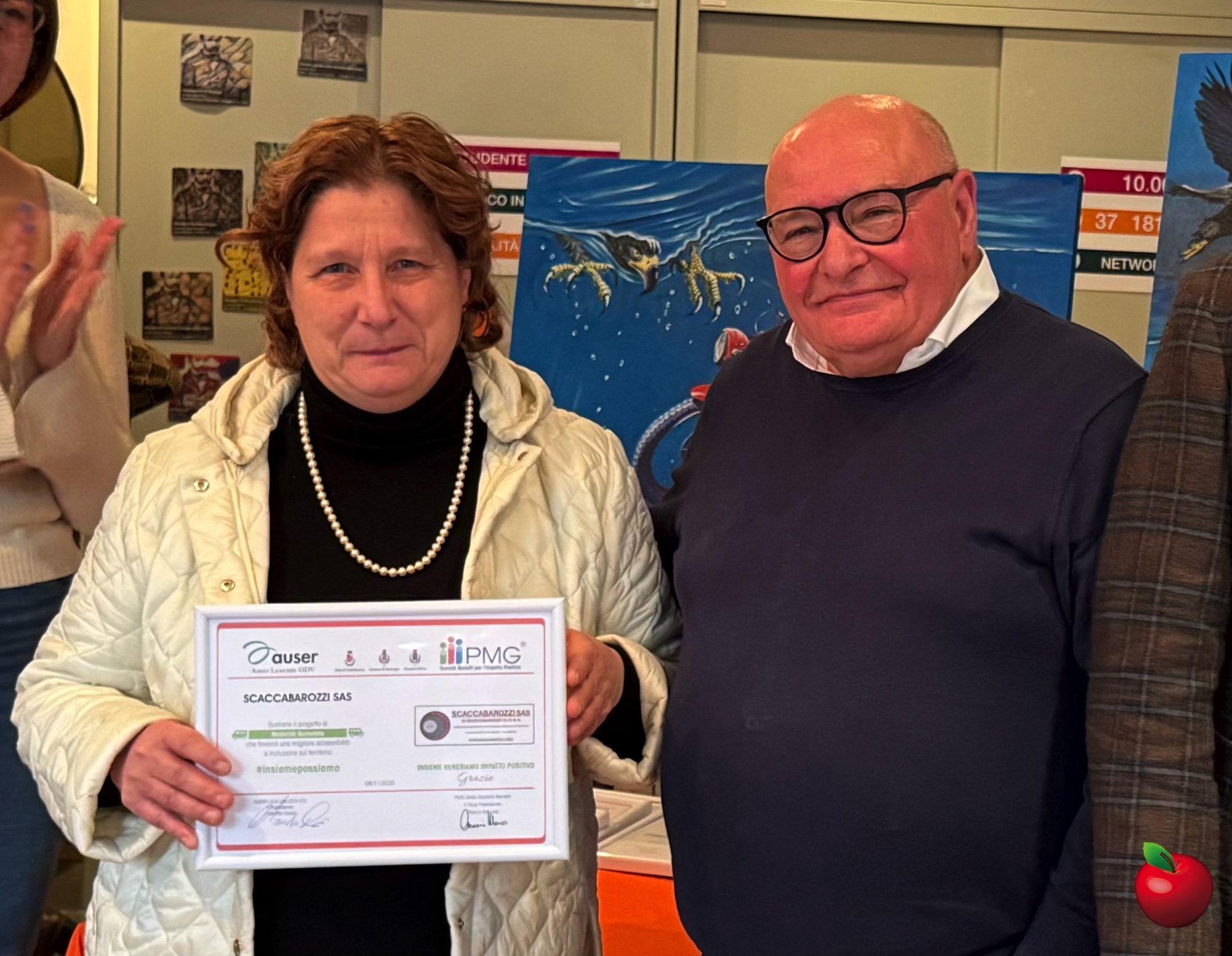 Quindi la cerimonia è volta al termine con la chiamata a uno a uno dei rappresentanti delle attività sponsor che hanno reso possibile l’arrivo dei due nuovi mezzi. A loro è stata consegnata una targa di ringraziamento ed è stato chiesto un commento. Ognuno in pochi secondi ha voluto rendere grazie ad Auser per l’opportunità offerta e ha spiegato come non si potesse fare a meno di aderire a un’iniziativa che ha una ricaduta positiva sull’intera collettività.