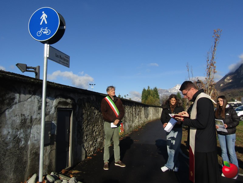 La cerimonia ufficiale per l'intitolazione è stata organizzata dal Comune, una volta ottenuti tutti i permessi del caso, insieme al vicino Istituto "Lorenzo Rota", rappresentato da due docenti e da tre giovani studentesse: proprio all'interno delle aule scolastiche, infatti, è stata realizzata un'installazione artistica che verrà prossimamente collocata presso la targa posta dall'Amministrazione in corrispondenza dell'accesso alla ciclopedonale dal parcheggio di via Padre Serviti.