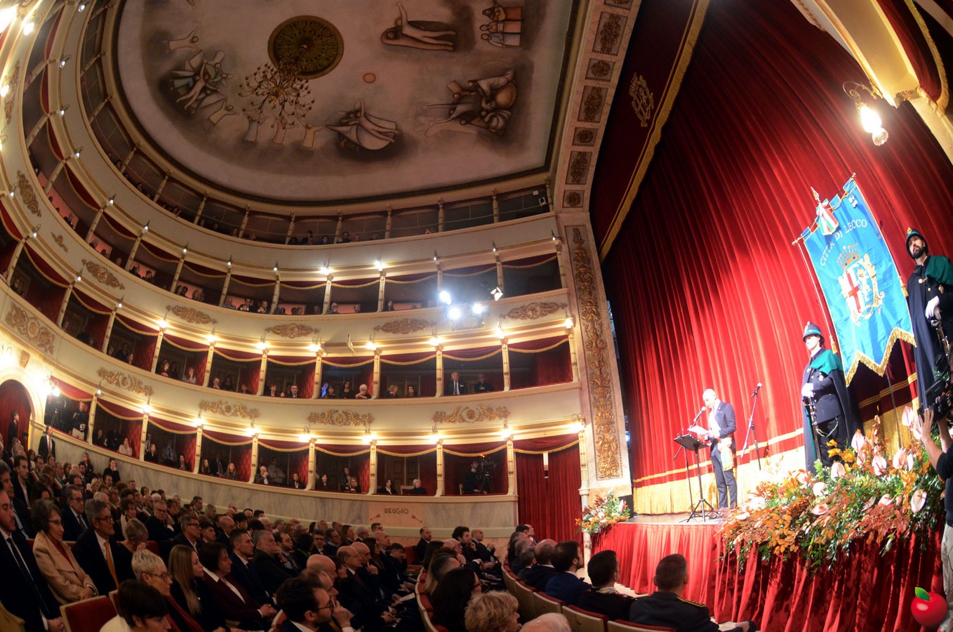 Sala gremita, riflettori accesi, un brusio che mancava da otto lunghissimi anni: il Teatro della Società è tornato alla città, e questa sera Lecco ha risposto con un abbraccio collettivo, riempiendo ogni posto con autorità, rappresentanti di Comune e Provincia, sindaci del territorio in fascia tricolore, cittadini, e volti emozionati che non vedevano l’ora di varcare di nuovo quella soglia.