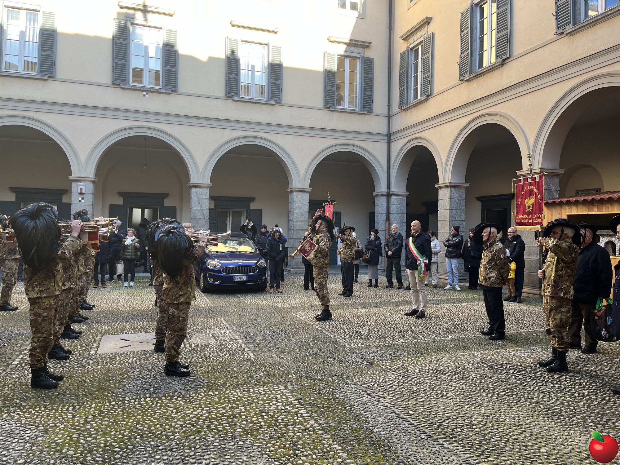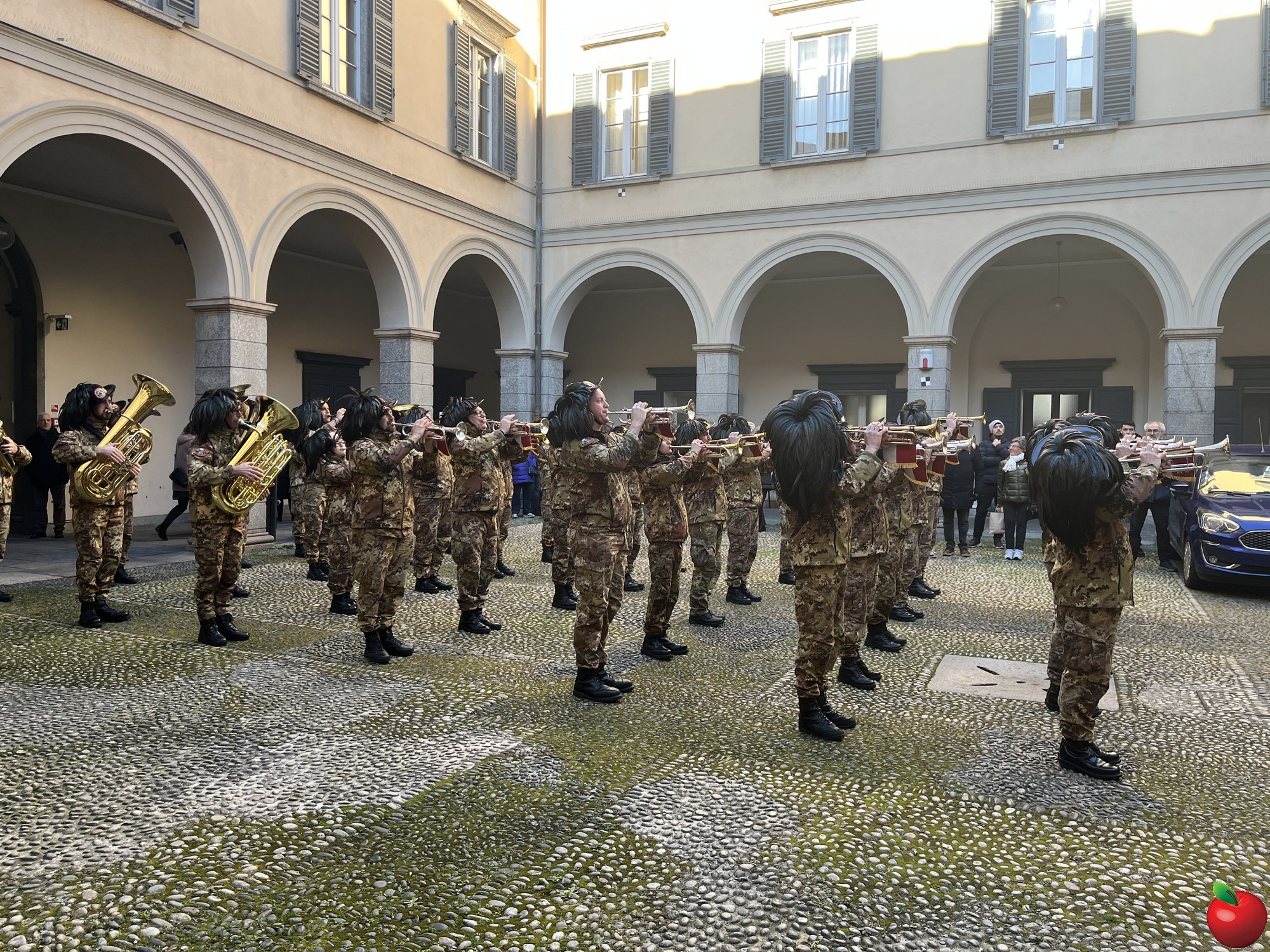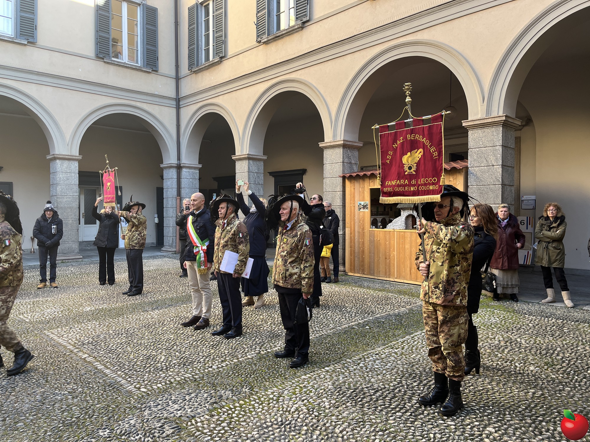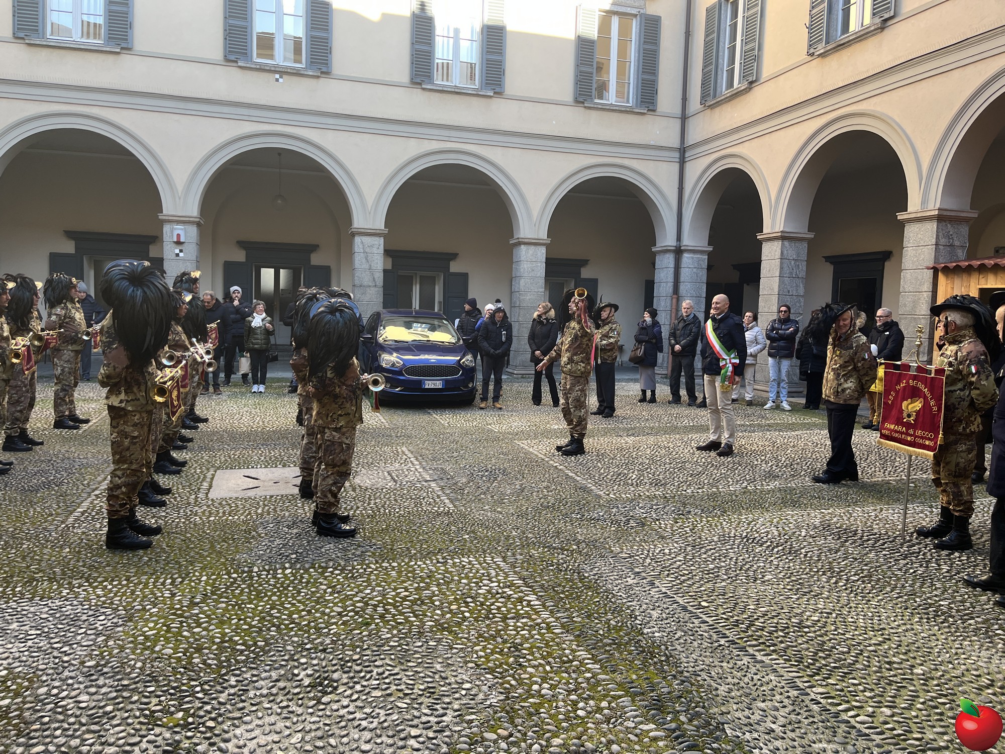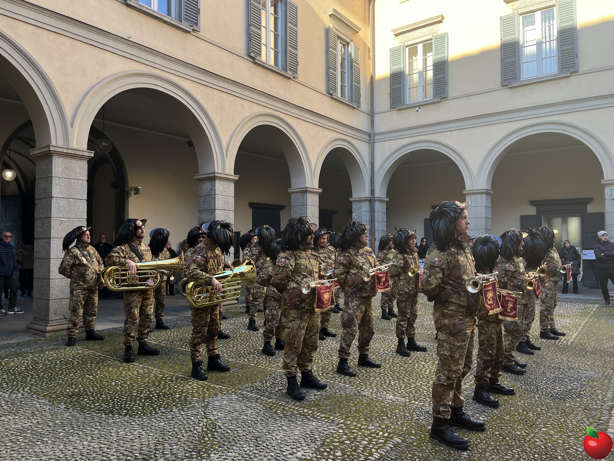 La sfilata, caratterizzata dal passo di corsa tipico dei bersaglieri, ha visto momenti significativi presso le istituzioni cittadine. Al Comune, dove la fanfara è stata accolta dal sindaco Mauro Gattinoni, non sono mancati i gesti di cordialità: i musicisti hanno lasciato in dono il calendario e hanno persino intonato "buon compleanno" per la moglie del primo cittadino.