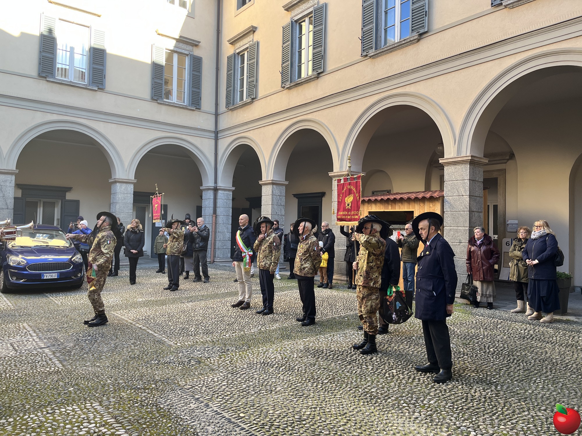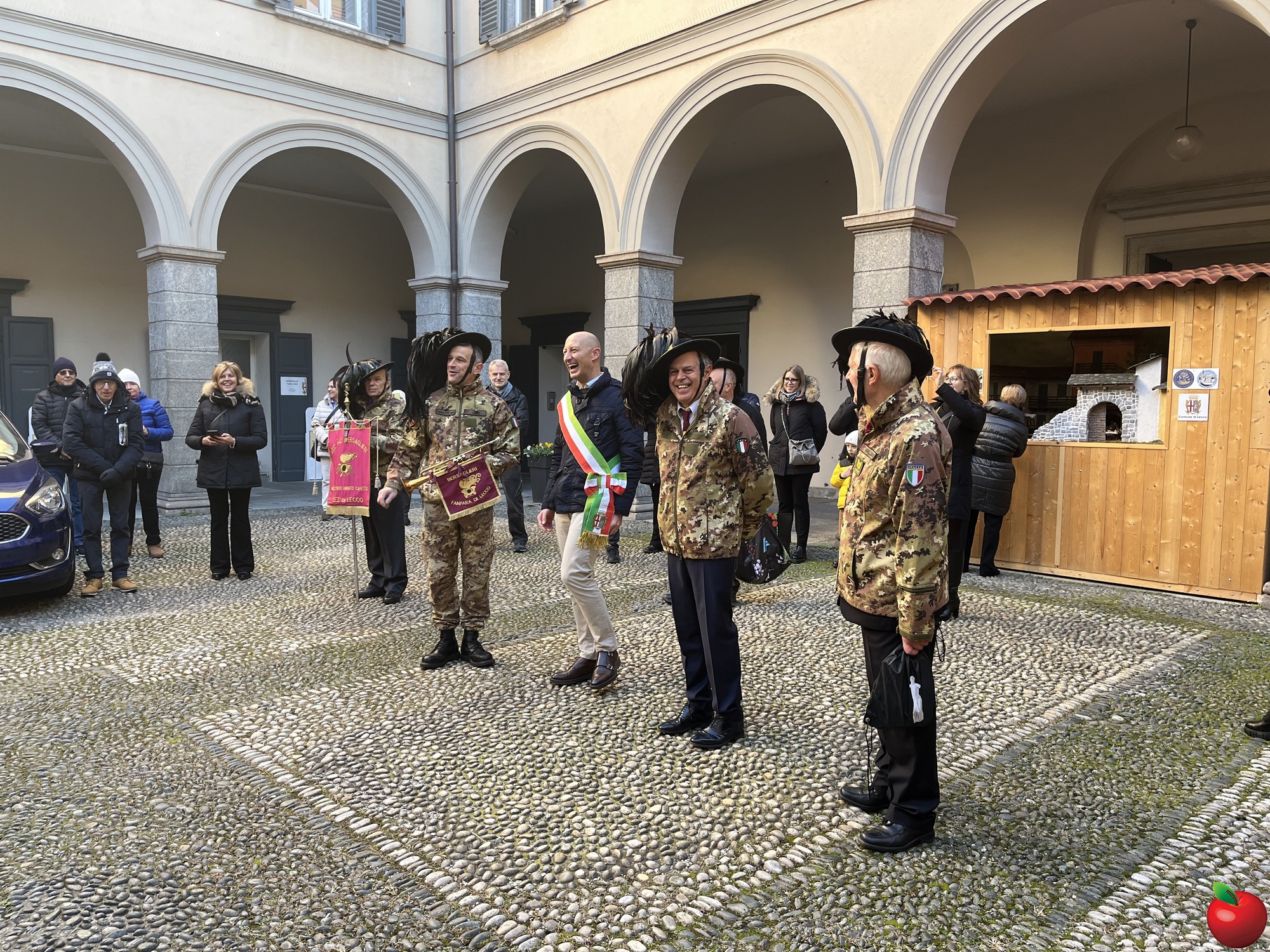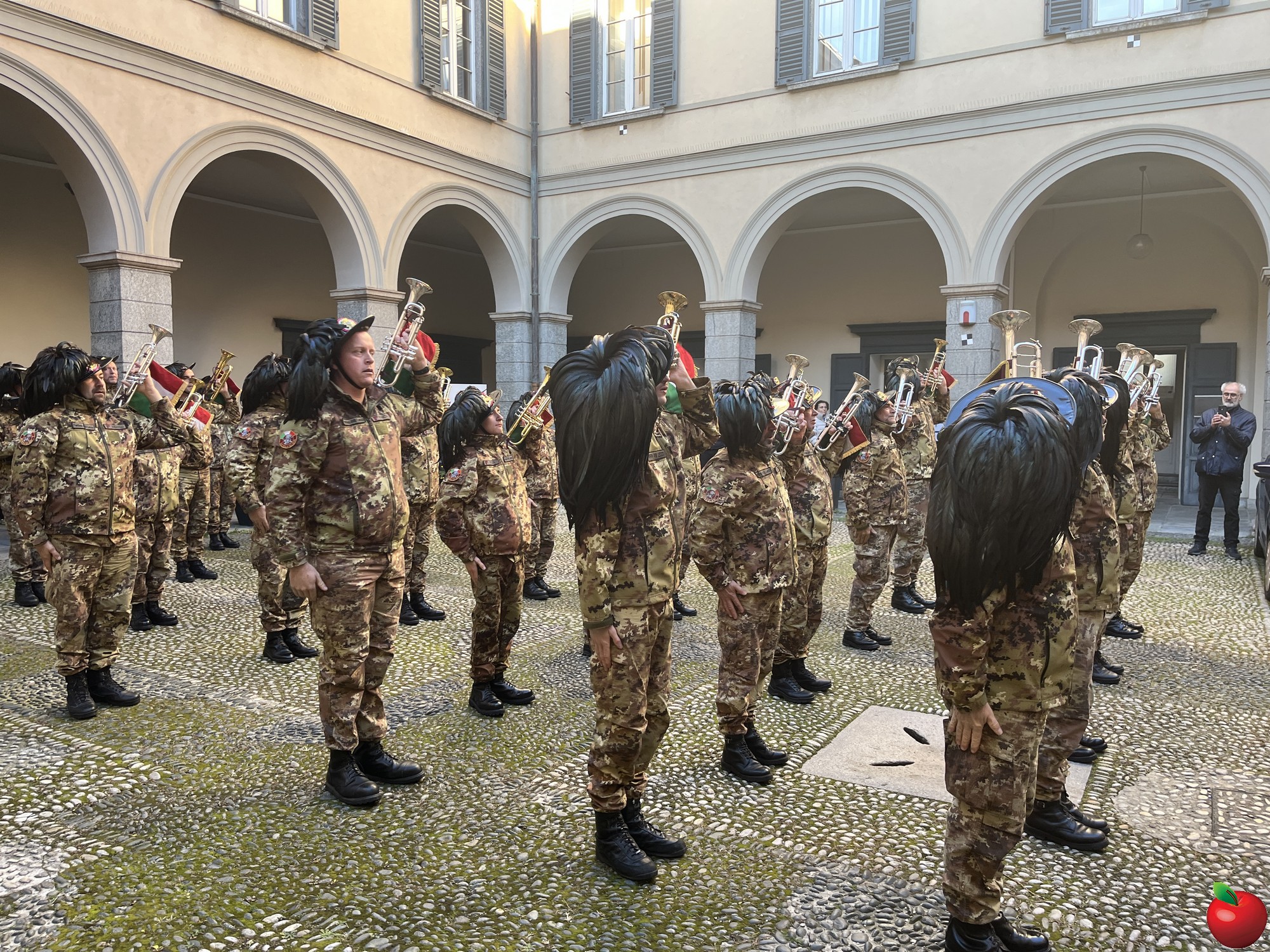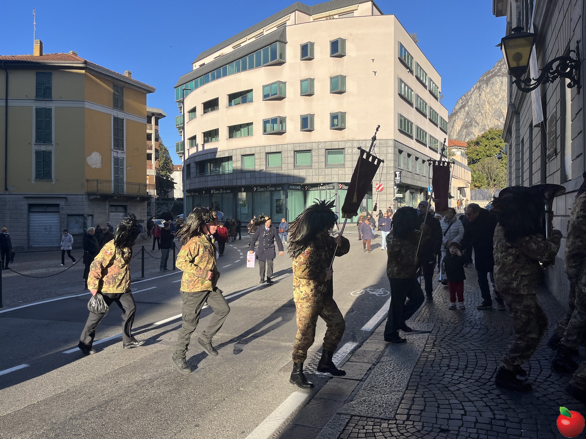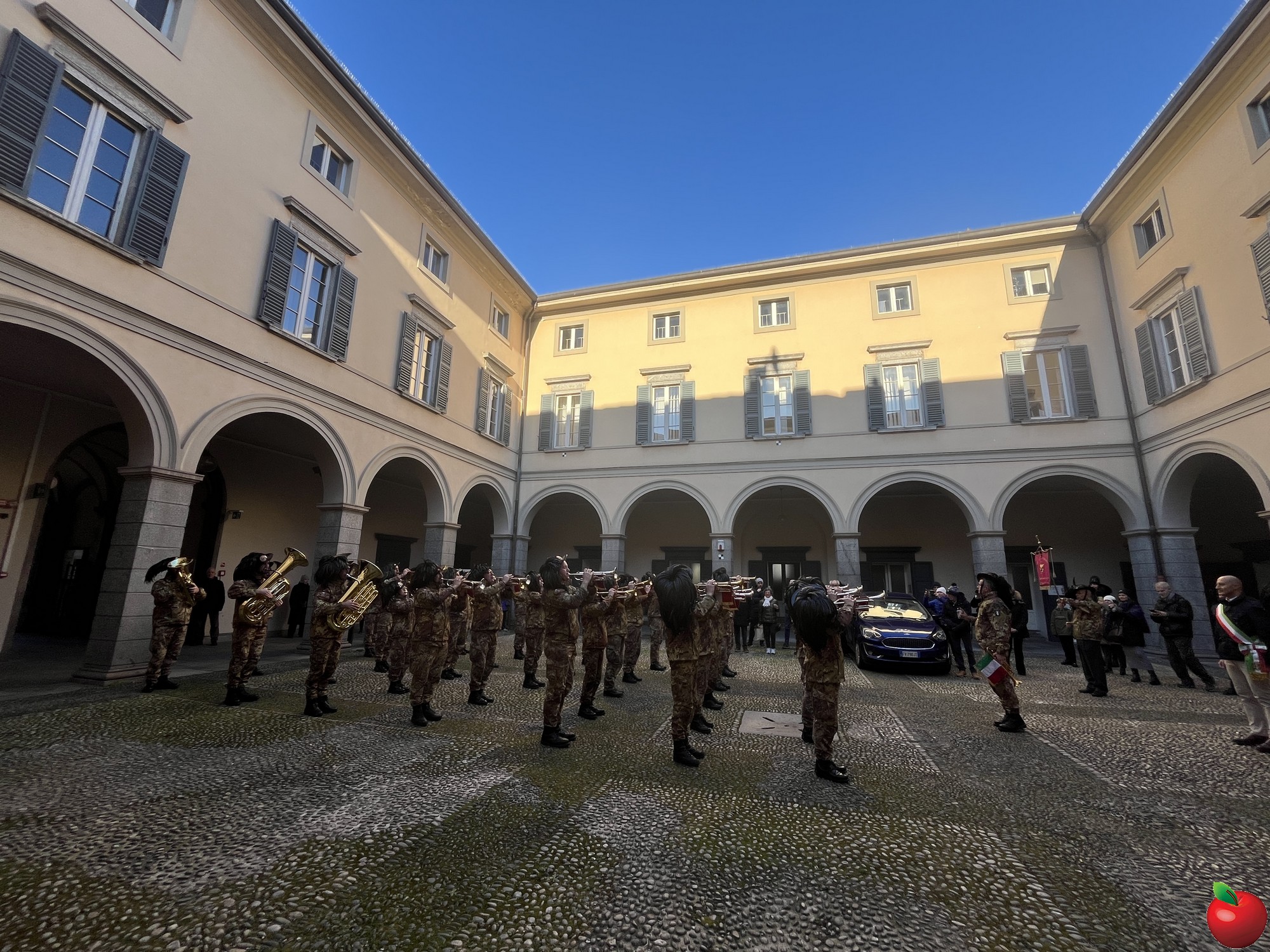 La sfilata, caratterizzata dal passo di corsa tipico dei bersaglieri, ha visto momenti significativi presso le istituzioni cittadine. Al Comune, dove la fanfara è stata accolta dal sindaco Mauro Gattinoni, non sono mancati i gesti di cordialità: i musicisti hanno lasciato in dono il calendario e hanno persino intonato "buon compleanno" per la moglie del primo cittadino.