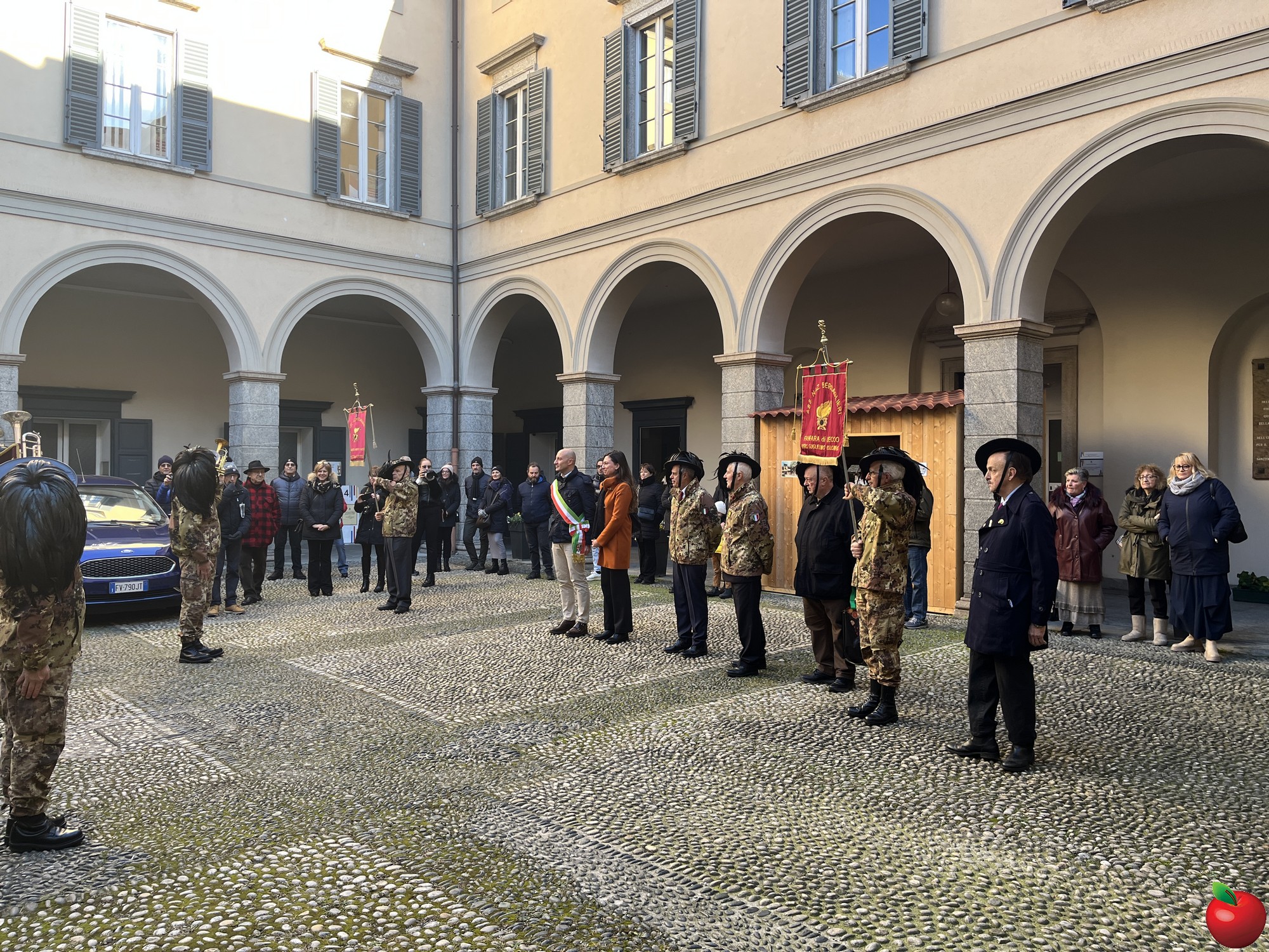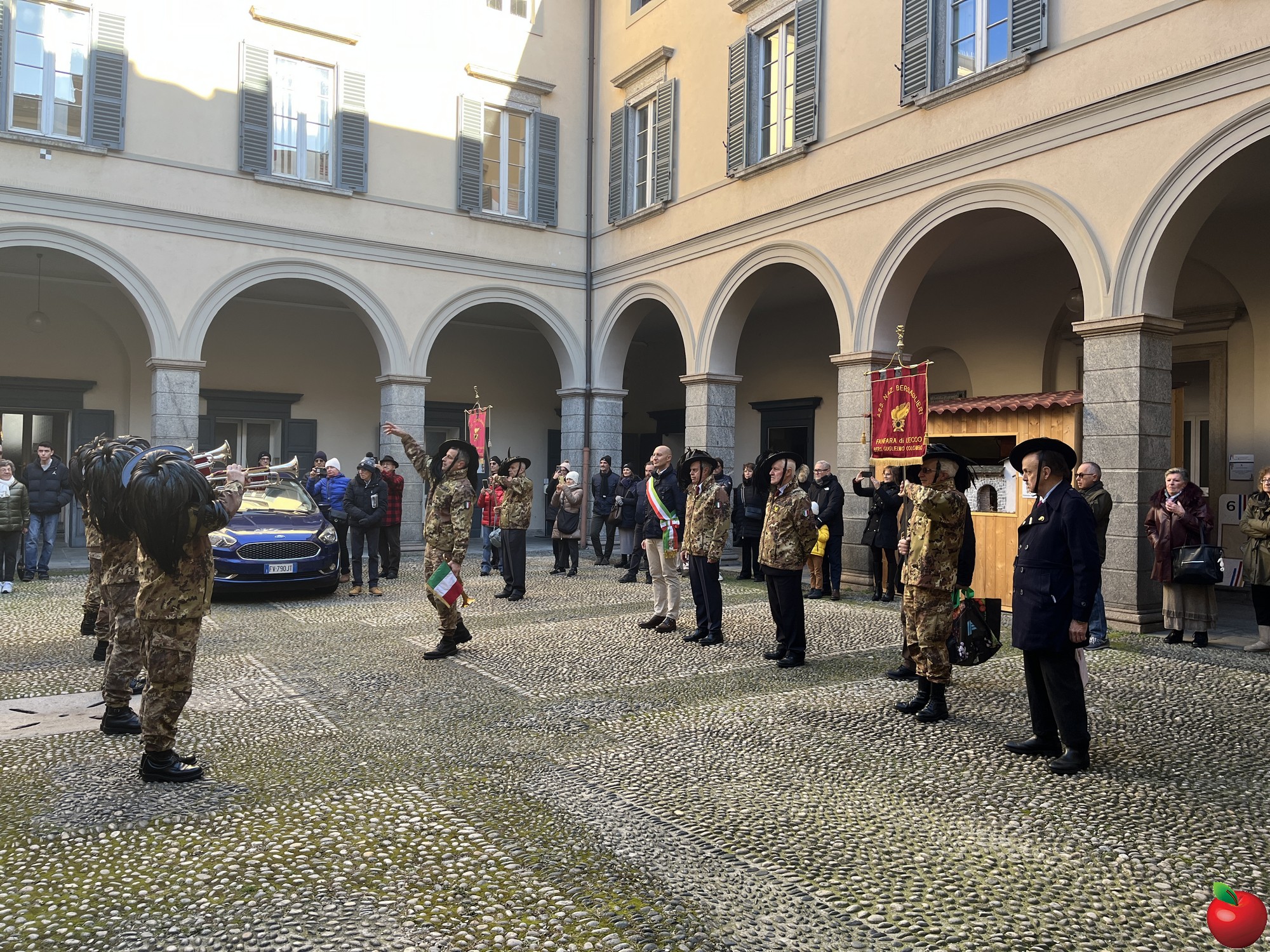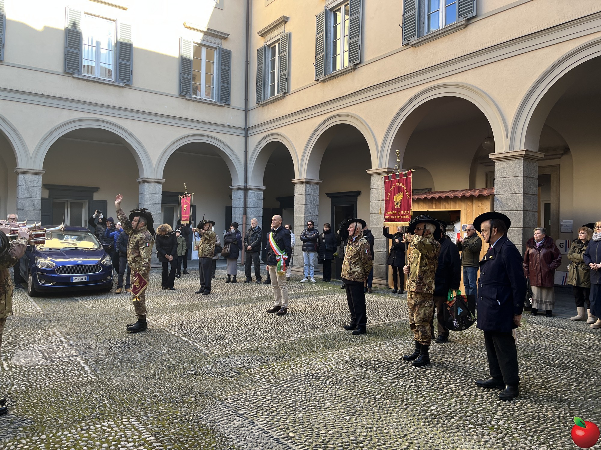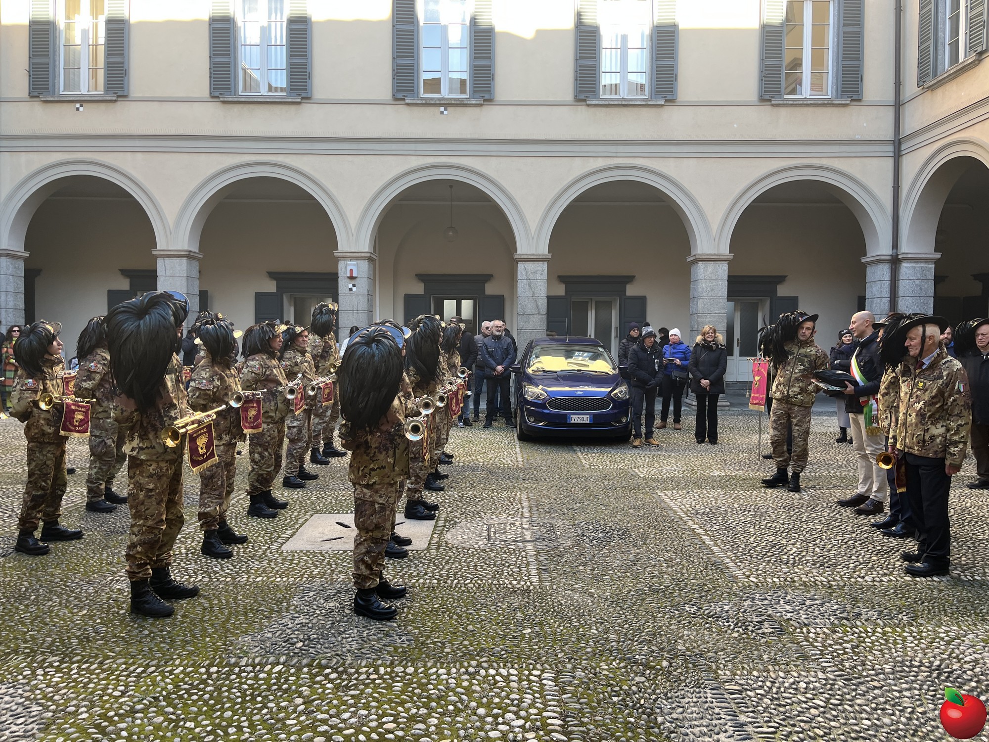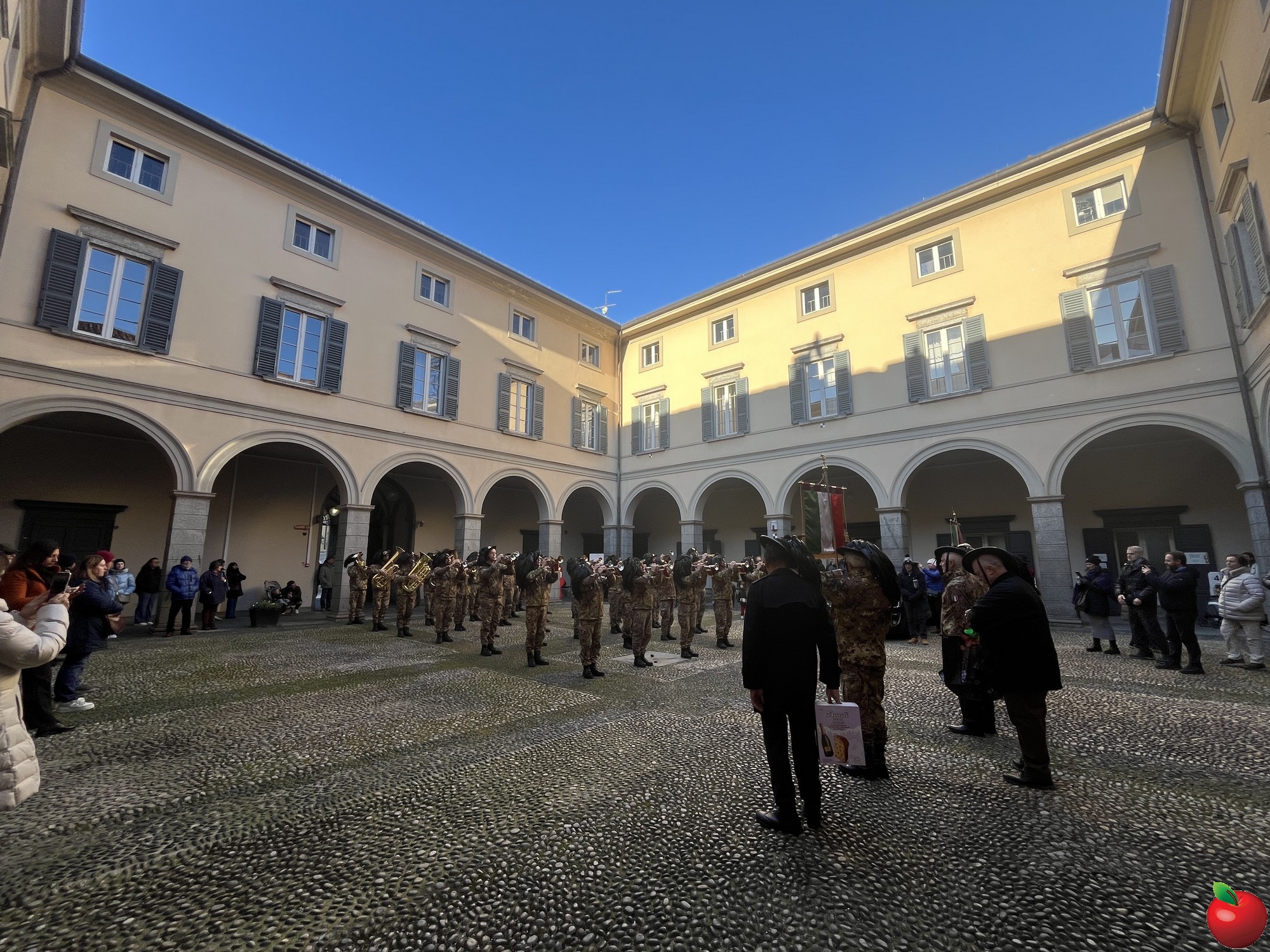 La sfilata, caratterizzata dal passo di corsa tipico dei bersaglieri, ha visto momenti significativi presso le istituzioni cittadine. Al Comune, dove la fanfara è stata accolta dal sindaco Mauro Gattinoni, non sono mancati i gesti di cordialità: i musicisti hanno lasciato in dono il calendario e hanno persino intonato "buon compleanno" per la moglie del primo cittadino.