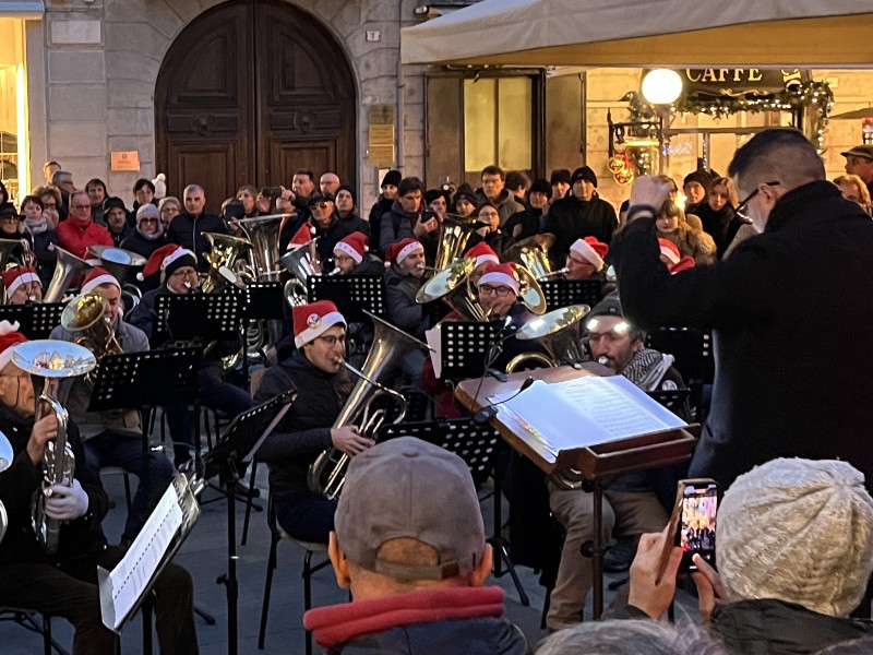 In un periodo in cui molte bande e corpi musicali sono impegnati in concerti, saggi scolastici ed eventi natalizi, non è sempre scontato riuscire a radunare un “ensemble” numeroso di ottoni gravi. Proprio per questo, il ritrovo di oggi pomeriggio in piazza XX Settembre ha assunto un valore particolare: chi ha risposto all’appello lo ha fatto per autentico spirito natalizio e per amore verso questi strumenti, spesso considerati comprimari ma capaci, quando messi al centro della scena, di esprimere una sorprendente ricchezza melodica.