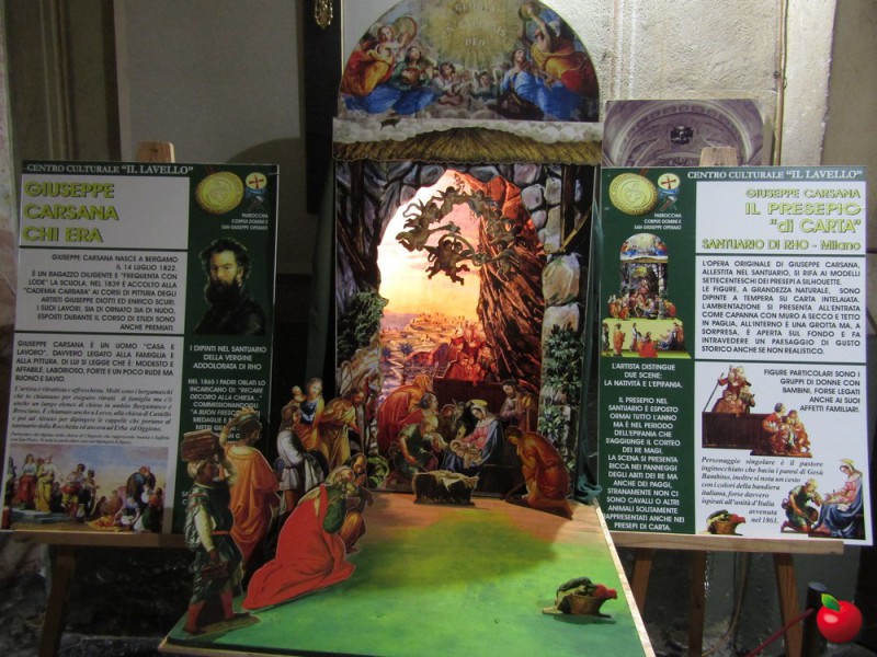 Da non perdere anche il presepio di carta a cura di Giuseppe Carsana, proposto dal Centro culturale "Il Lavello" che anche quest'anno è tornato ad allestirne un altro - dell'artista contemporaneo e terziario francescano Erio Proverbio - nella chiesa a poca distanza dal fiume: quello presente a Sala è la riproduzione di un'opera allestita nel Santuario di Rho (Milano), dove le figure, a grandezza naturale, sono dipinte a tempera su carta intelaiata e rappresentano due scene distinte, la Natività e l'Epifania, con la capanna inserita all'interno di una grotta che a sorpresa si apre sul fondo e lascia intravvedere un paesaggio di gusto storico ma non realistico.
