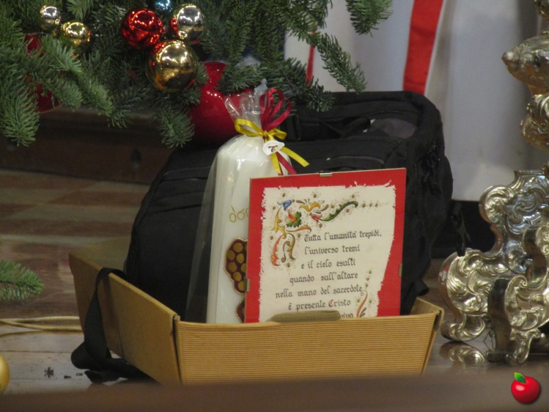 Quale ringraziamento per la sua preziosa testimonianza, e in omaggio al suo 25° anniversario di ordinazione, la comunità di Garlate ha quindi consegnato a don Pietro tre doni: un cero, un quadretto con una frase di San Francesco e uno zaino, con cui trasportare la sua amata macchina fotografica e tutto il necessario per la sua missione nel Sud-est asiatico, con l'ulteriore "promessa" di destinare a lui anche le offerte che saranno raccolte il prossimo 6 gennaio tra Olginate, Garlate e Pescate in occasione del bacio a Gesù Bambino.