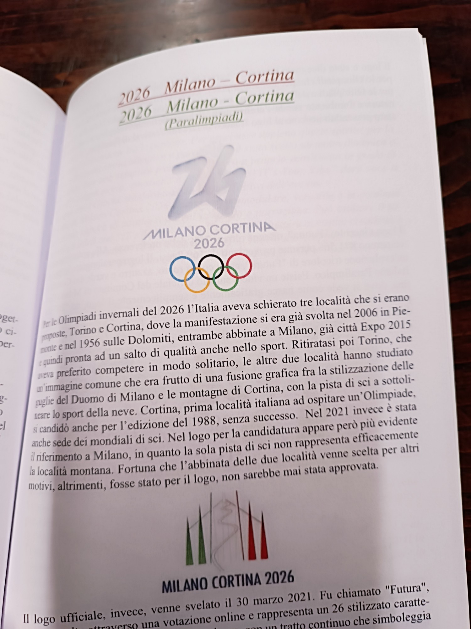 È stato presentato a Villa Migliavacca il volume di Paolo Cagnotto "Grafica, poster, loghi e mascotte nei giochi olimpici e paralimpici invernali". Il testo, accompagnato da tante immagini mostra come ogni grande evento moderno sia caratterizzato da una grafica che lo rende immediatamente riconoscibile e che funge sia da simbolo identitario sia da strumento economico.