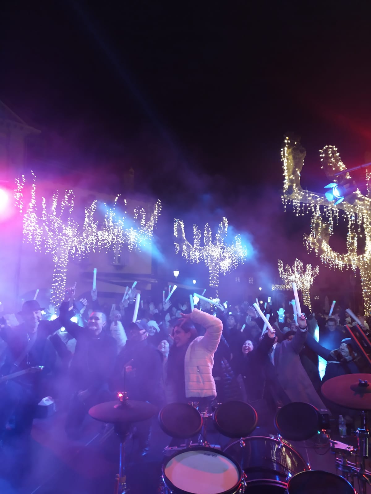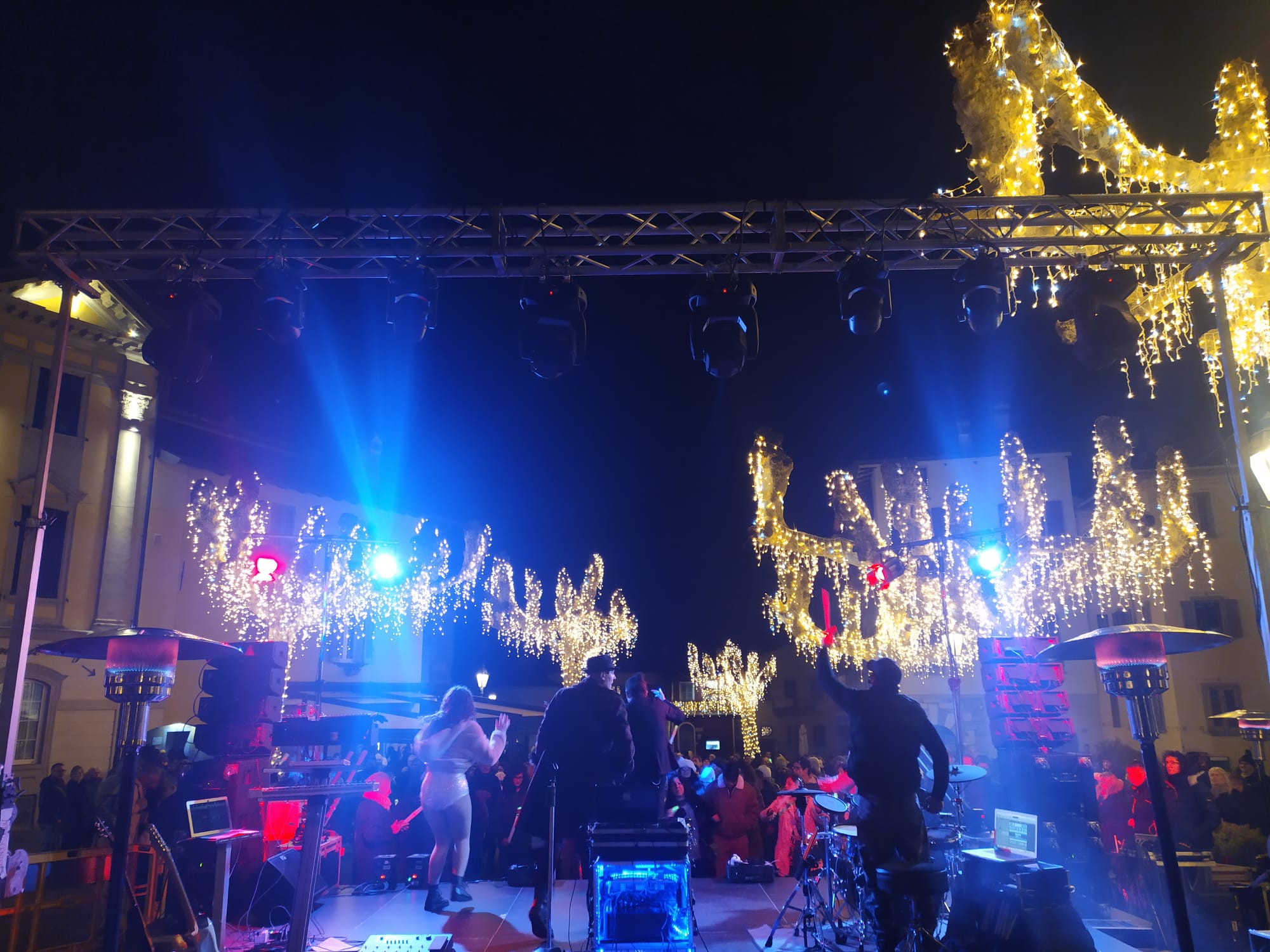 Marco Mesemi (voce), Andrea Lamberti (chitarra e tastiere) e Daniele Quarto (batteria), accompagnati da due ballerine professioniste, hanno regalato uno show ricco di energia, luci, colori ed effetti scenici che ha fatto ballare e cantare l’intera piazza fino al tradizionale countdown di mezzanotte.