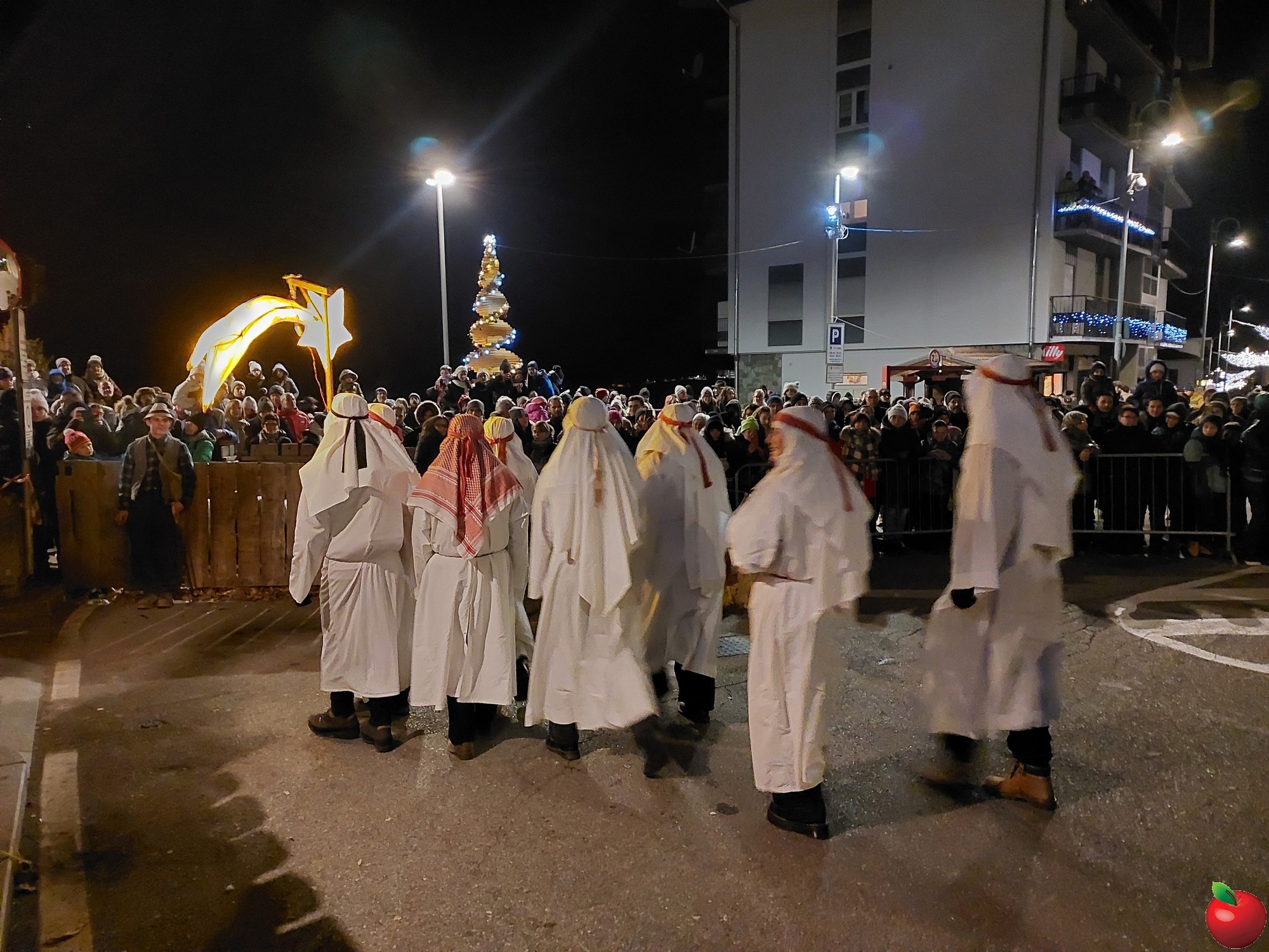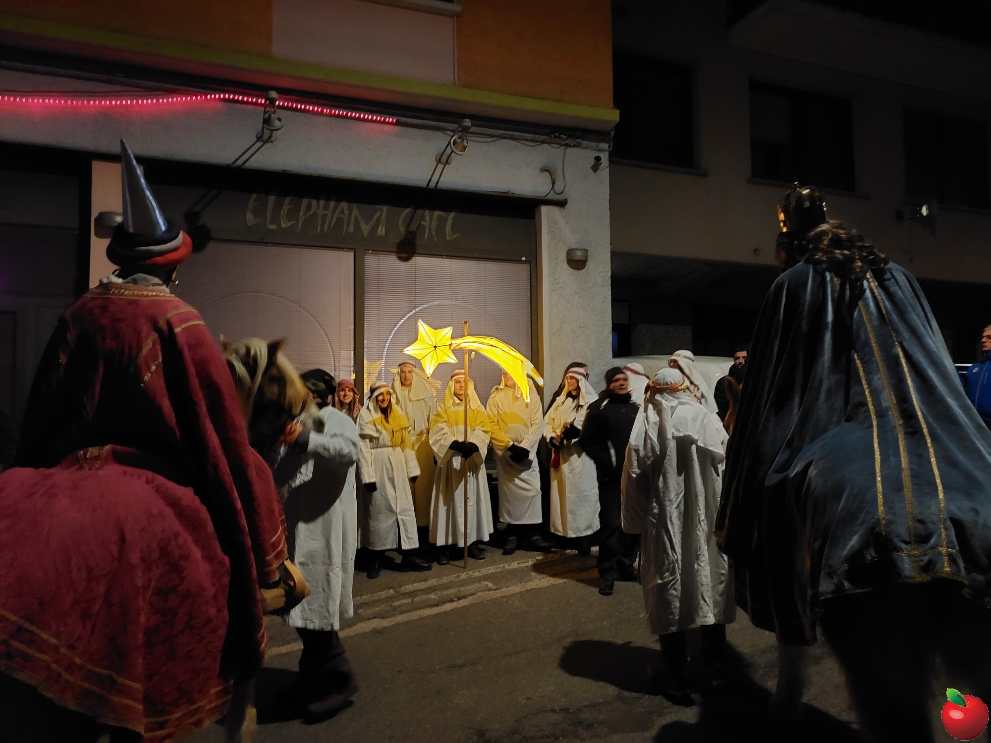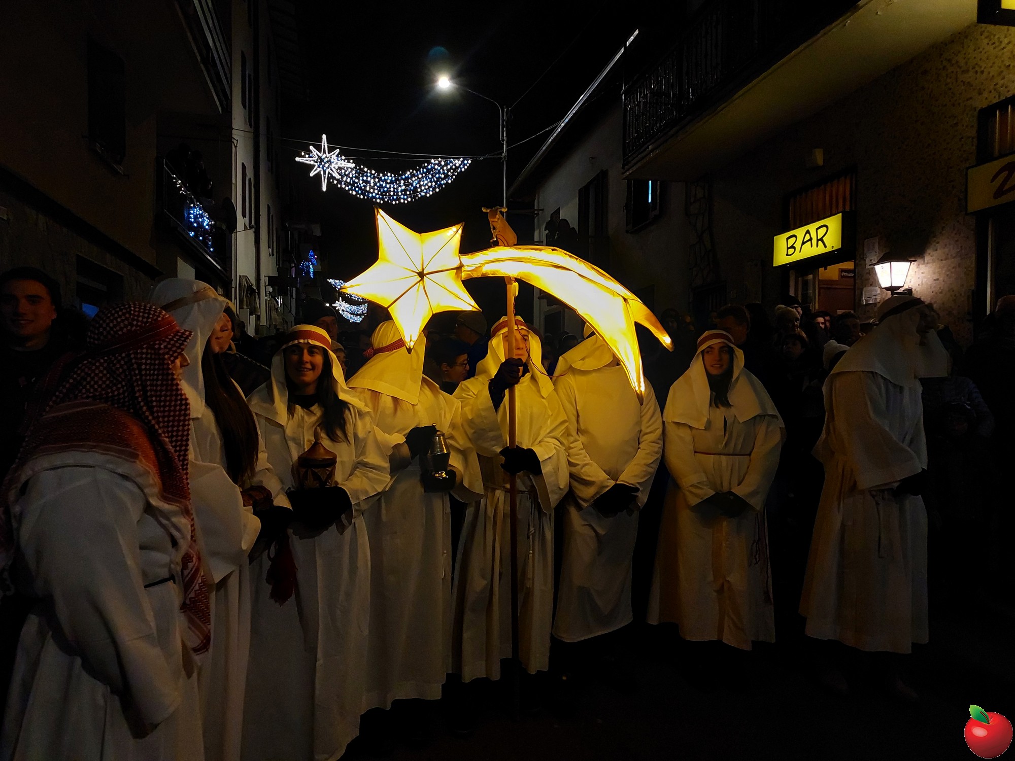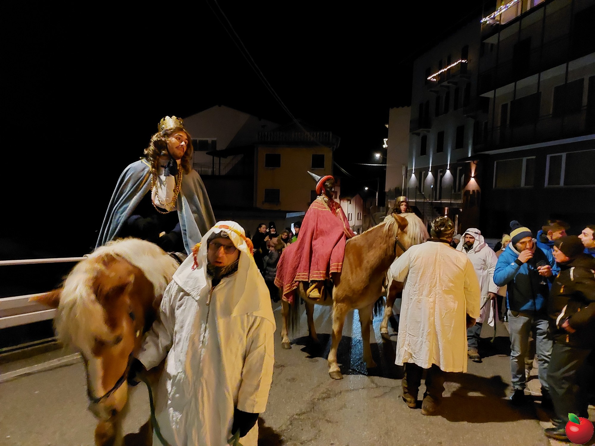 Quest’anno sono ricaduti sui coscritti della classe 2003 l’onere e l’onore di interpretare i tre Magi a cavallo e i beduini e pastorelli al loro seguito, così come di rappresentare il presepe vivente in piazza della chiesa. Intorno alle 20.30, il corteo ha preso il via dalla zona dell’Elephant Pub, percorrendo Via Roma prima di addentrarsi tra le strette viuzze del centro storico del “paese delle lame”. Ad “aprire la fila”, facendo da guida a tutti i presenti, la splendida e “storica” stella cometa, portata anch’essa dai giovani coscritti.
