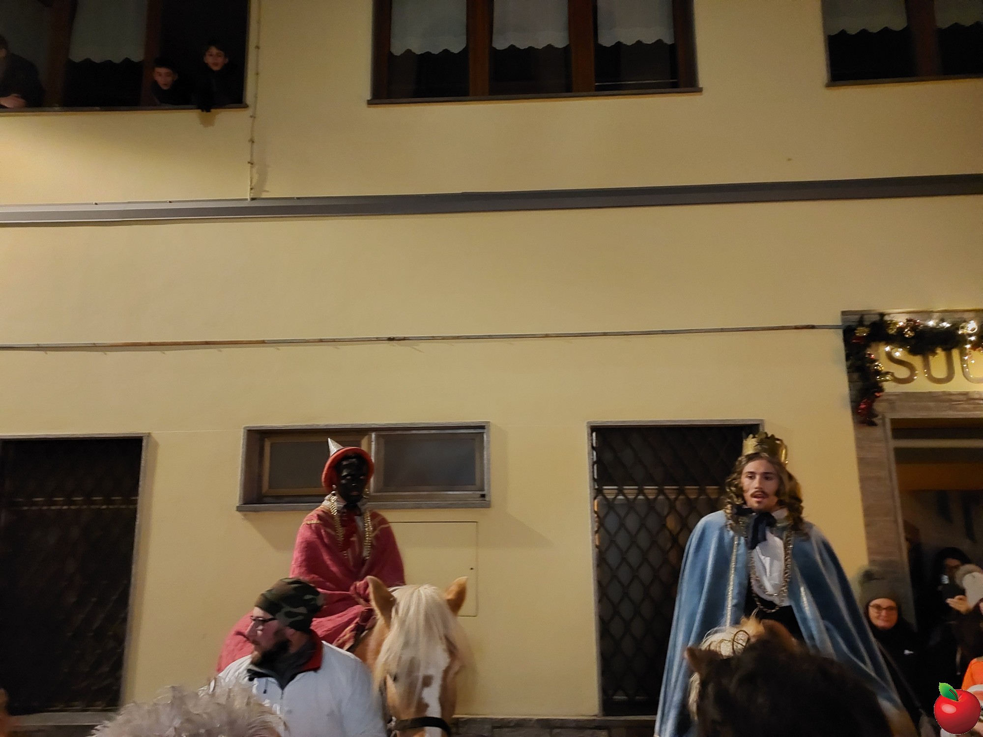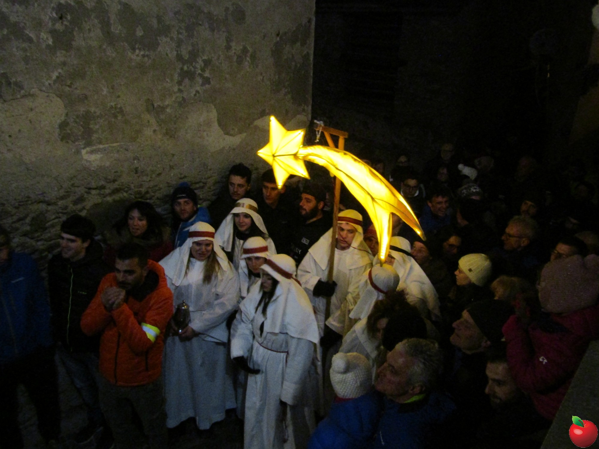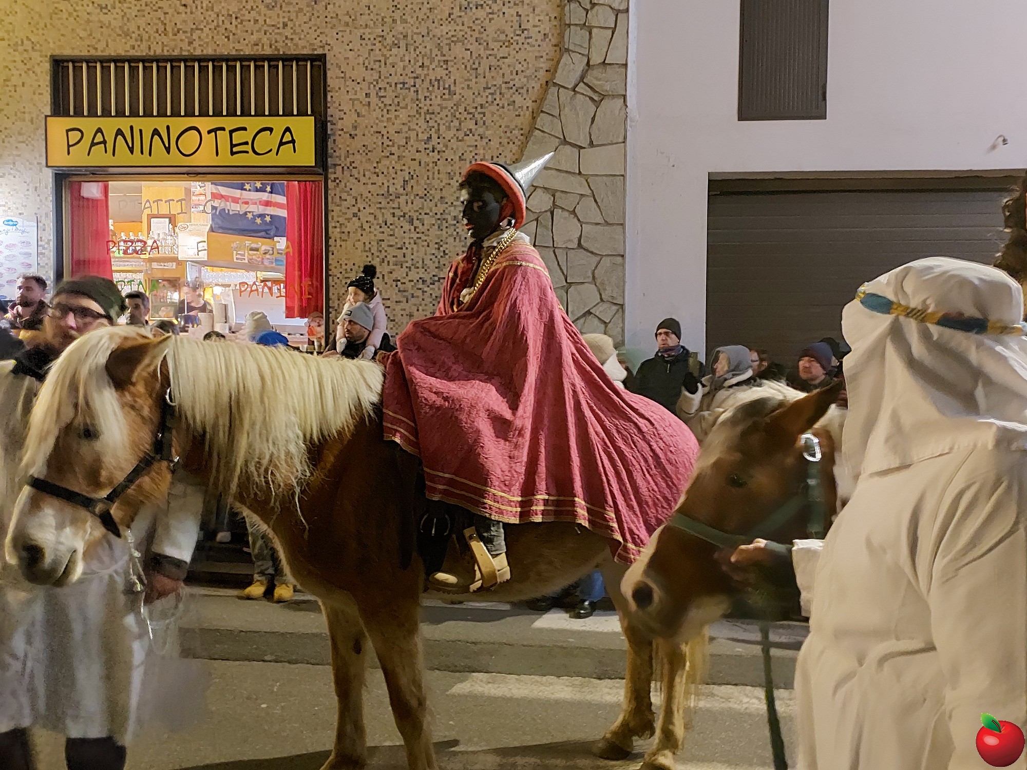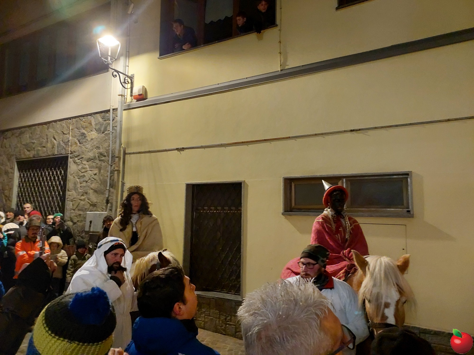 Quest’anno sono ricaduti sui coscritti della classe 2003 l’onere e l’onore di interpretare i tre Magi a cavallo e i beduini e pastorelli al loro seguito, così come di rappresentare il presepe vivente in piazza della chiesa. Intorno alle 20.30, il corteo ha preso il via dalla zona dell’Elephant Pub, percorrendo Via Roma prima di addentrarsi tra le strette viuzze del centro storico del “paese delle lame”. Ad “aprire la fila”, facendo da guida a tutti i presenti, la splendida e “storica” stella cometa, portata anch’essa dai giovani coscritti.