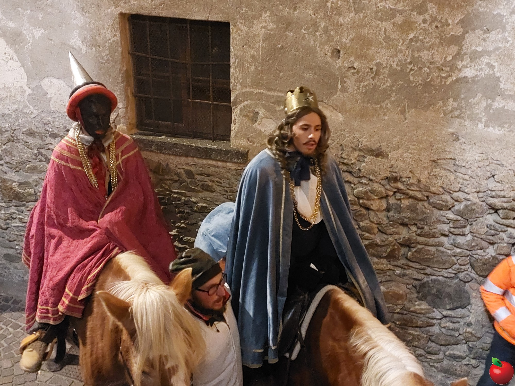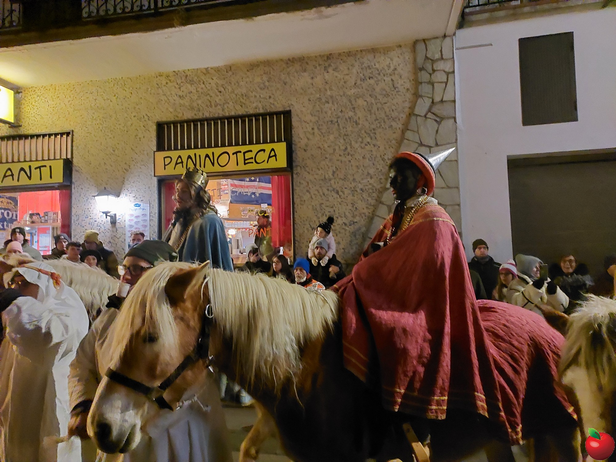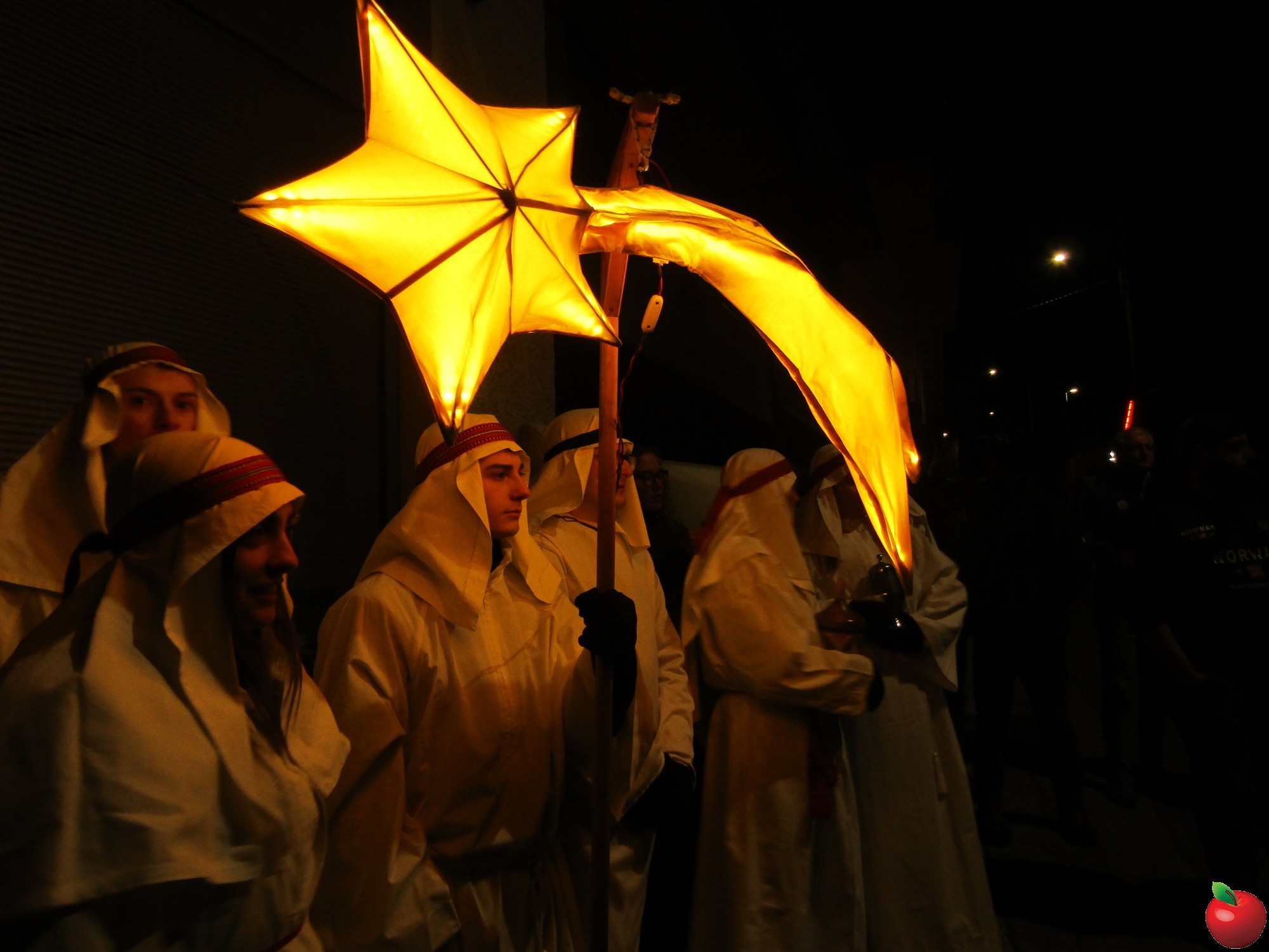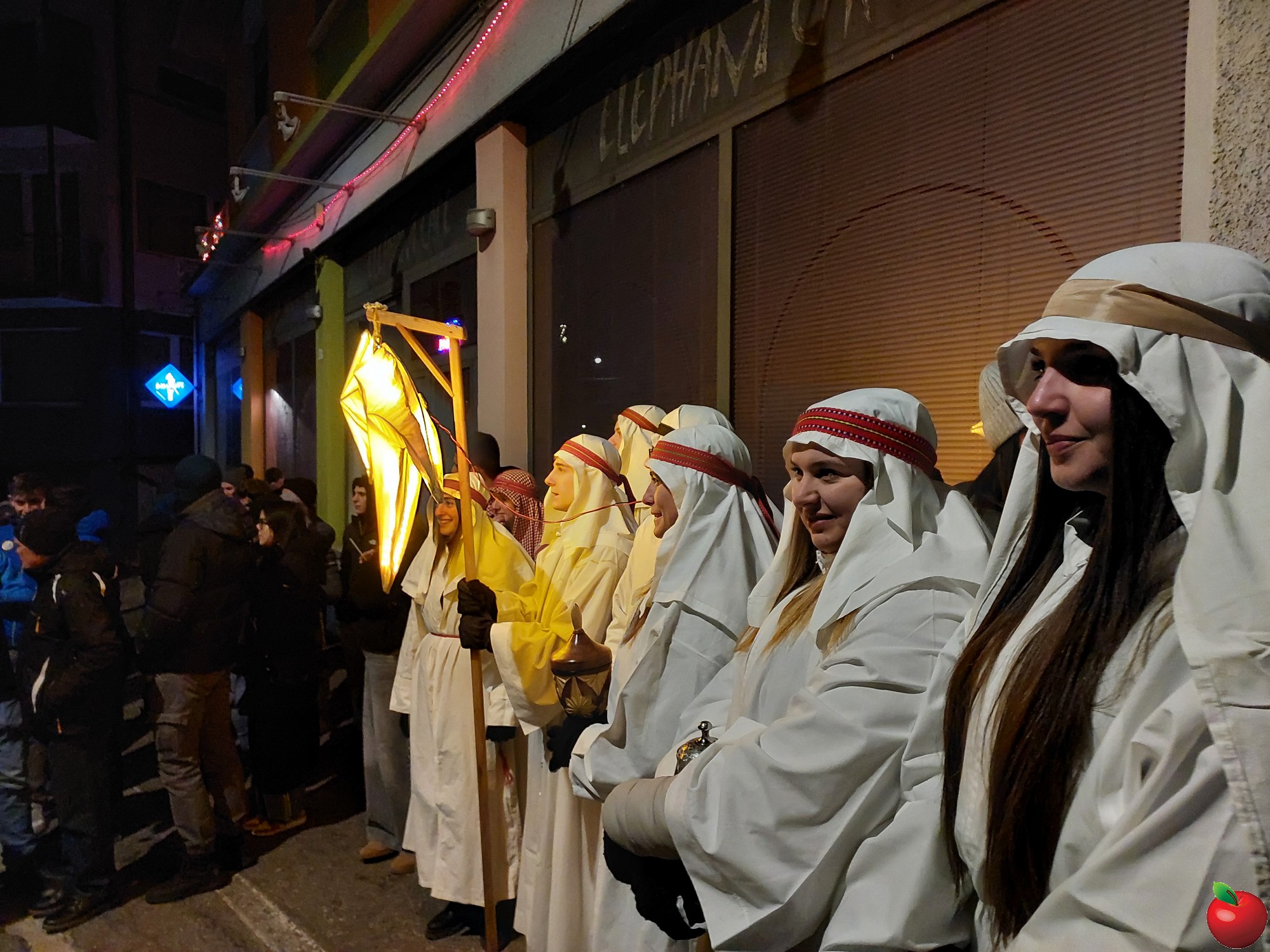 Quest’anno sono ricaduti sui coscritti della classe 2003 l’onere e l’onore di interpretare i tre Magi a cavallo e i beduini e pastorelli al loro seguito, così come di rappresentare il presepe vivente in piazza della chiesa. Intorno alle 20.30, il corteo ha preso il via dalla zona dell’Elephant Pub, percorrendo Via Roma prima di addentrarsi tra le strette viuzze del centro storico del “paese delle lame”. Ad “aprire la fila”, facendo da guida a tutti i presenti, la splendida e “storica” stella cometa, portata anch’essa dai giovani coscritti.