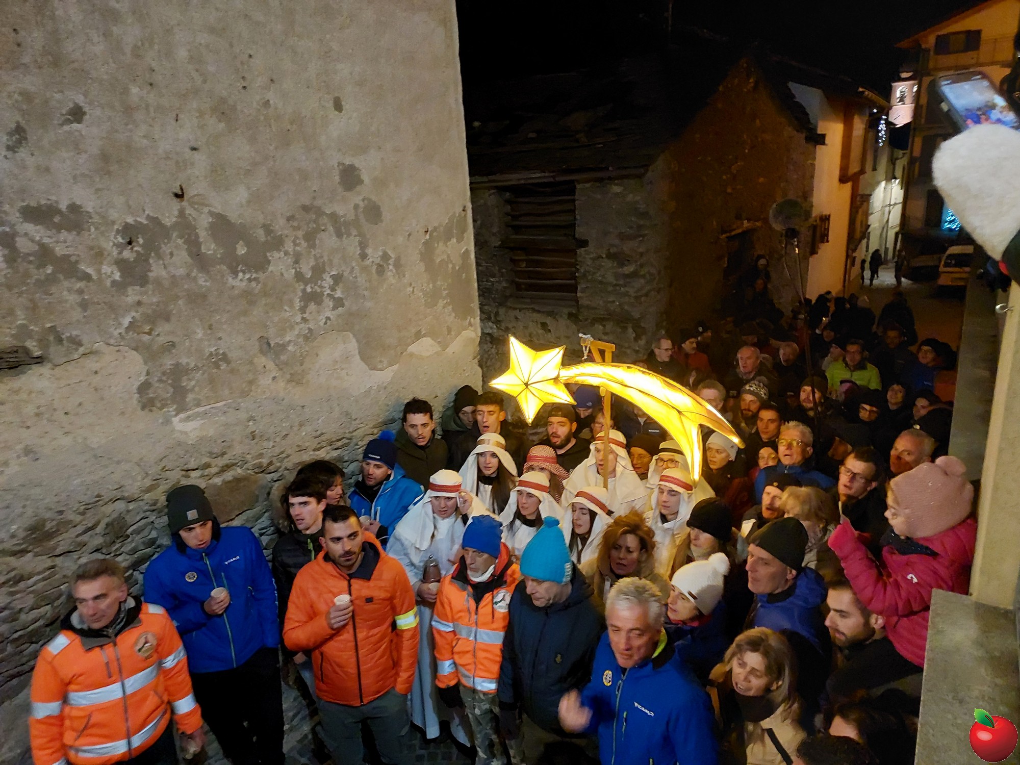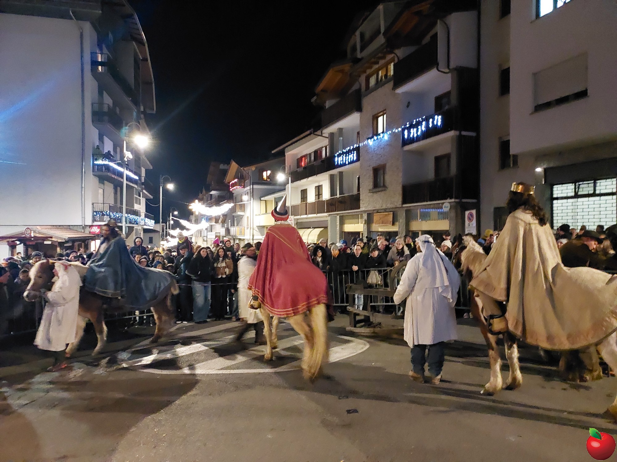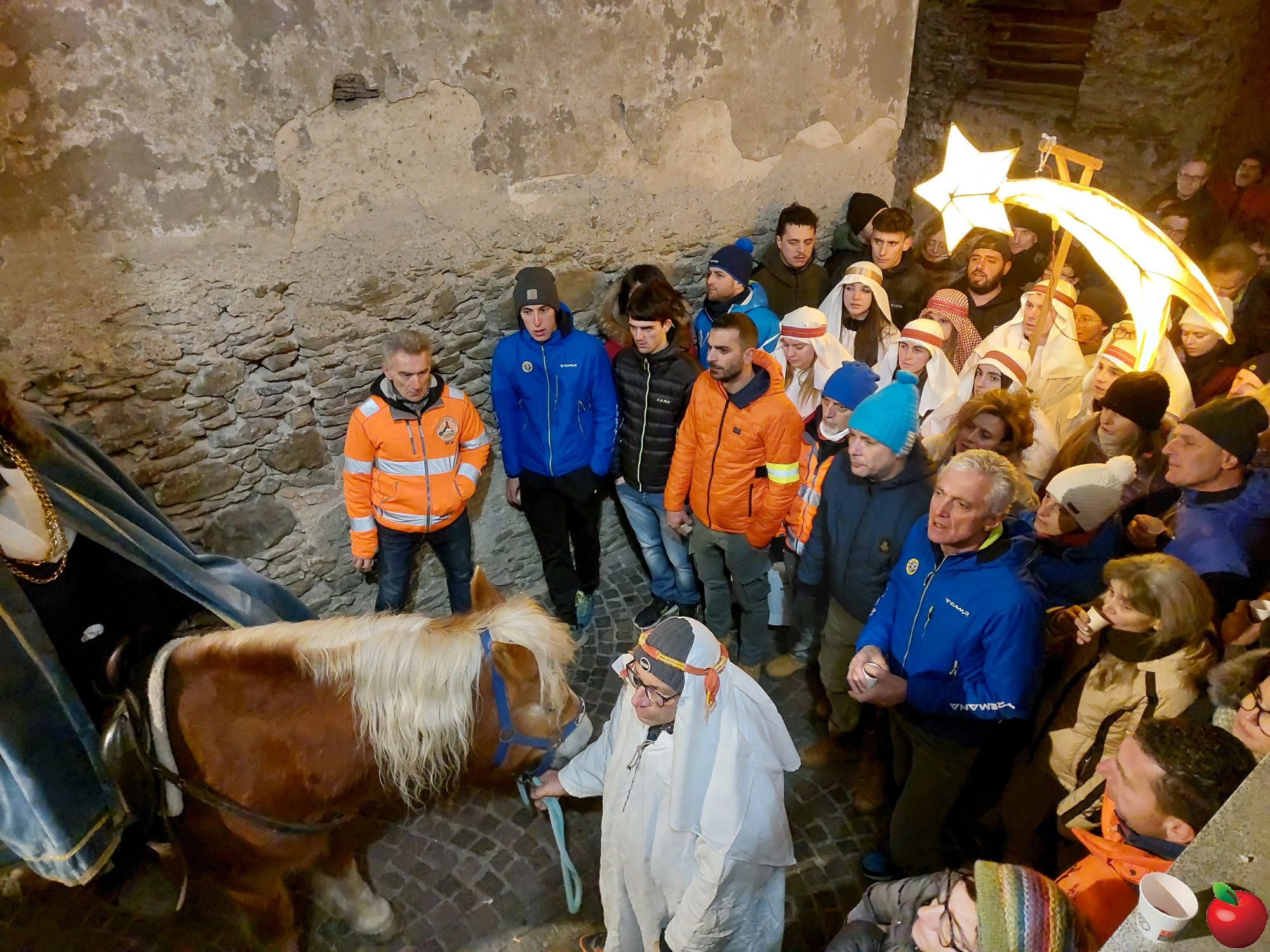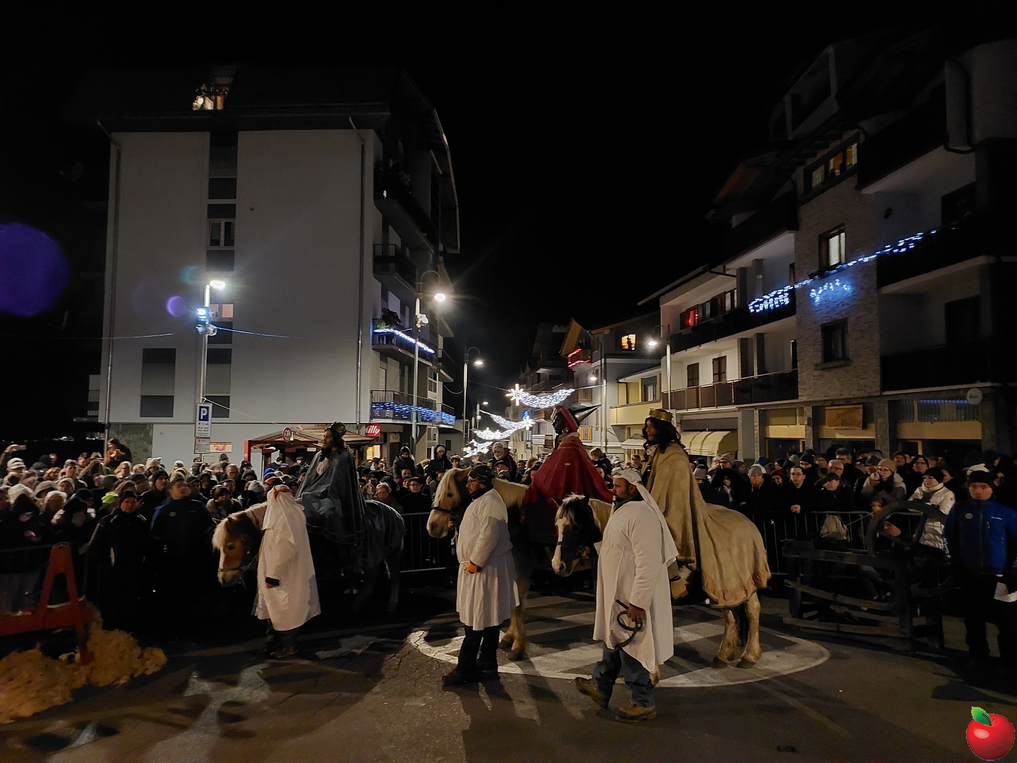 Quest’anno sono ricaduti sui coscritti della classe 2003 l’onere e l’onore di interpretare i tre Magi a cavallo e i beduini e pastorelli al loro seguito, così come di rappresentare il presepe vivente in piazza della chiesa. Intorno alle 20.30, il corteo ha preso il via dalla zona dell’Elephant Pub, percorrendo Via Roma prima di addentrarsi tra le strette viuzze del centro storico del “paese delle lame”. Ad “aprire la fila”, facendo da guida a tutti i presenti, la splendida e “storica” stella cometa, portata anch’essa dai giovani coscritti.