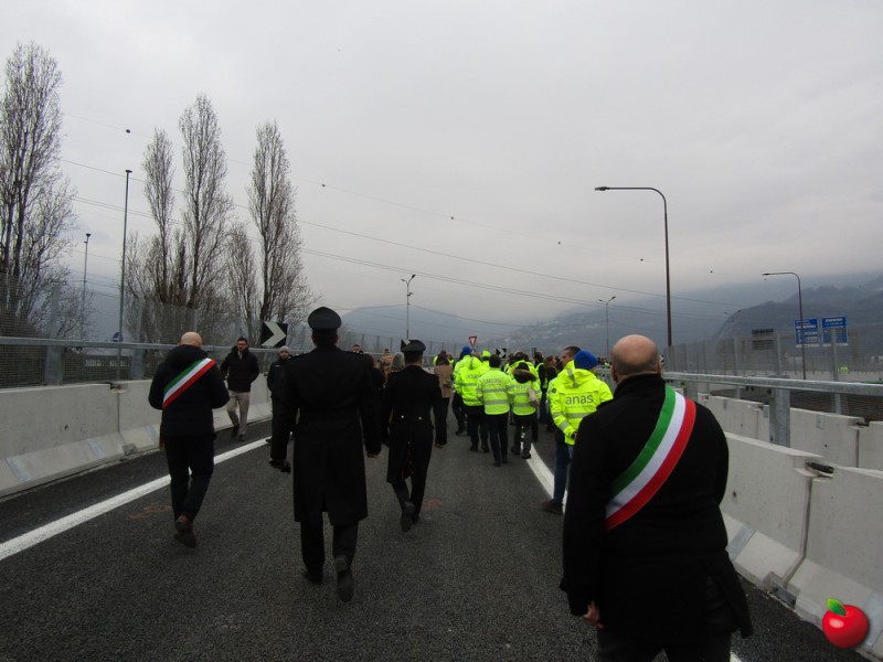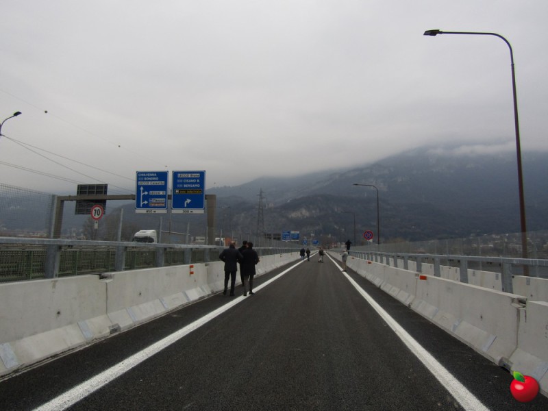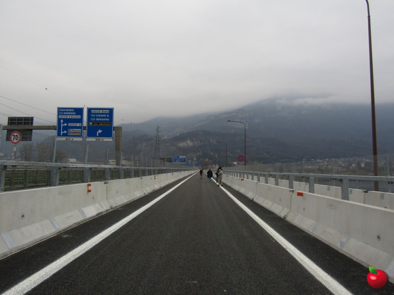 Al termine degli interventi dal palco, in cui nessuno ha però citato un'altra opera molto attesa sul territorio come la Lecco-Bergamo, la nuova infrastruttura ha ricevuto la benedizione del parroco di Pescate don Matteo Gignoli: a seguire l'atteso taglio del nastro, dopo il quale i presenti hanno potuto finalmente muovere i primi passi sul ponte, ora aperto al traffico.