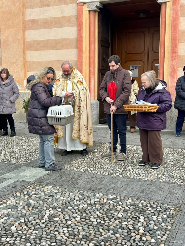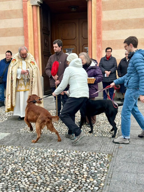 Nonostante un cielo nuvoloso, ma con una temperatura gradevole, nella giornata di ieri numerosi fedeli si sono raccolti sui sagrati di entrambe le chiese, portando i propri animali da compagnia o da affezione per la benedizione, gesto semplice ma carico di significato.