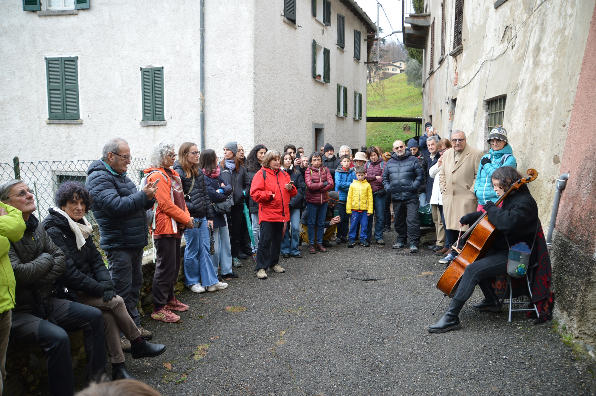 Durante la passeggiata, Gianfranco Scotti ha letto il celebre brano manzoniano dell’Addio Monti, mentre la conclusione è stata affidata alle note della violoncellista Mariantonietta Puggioni.