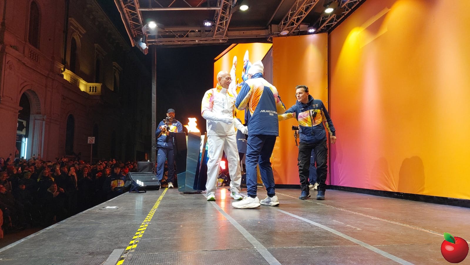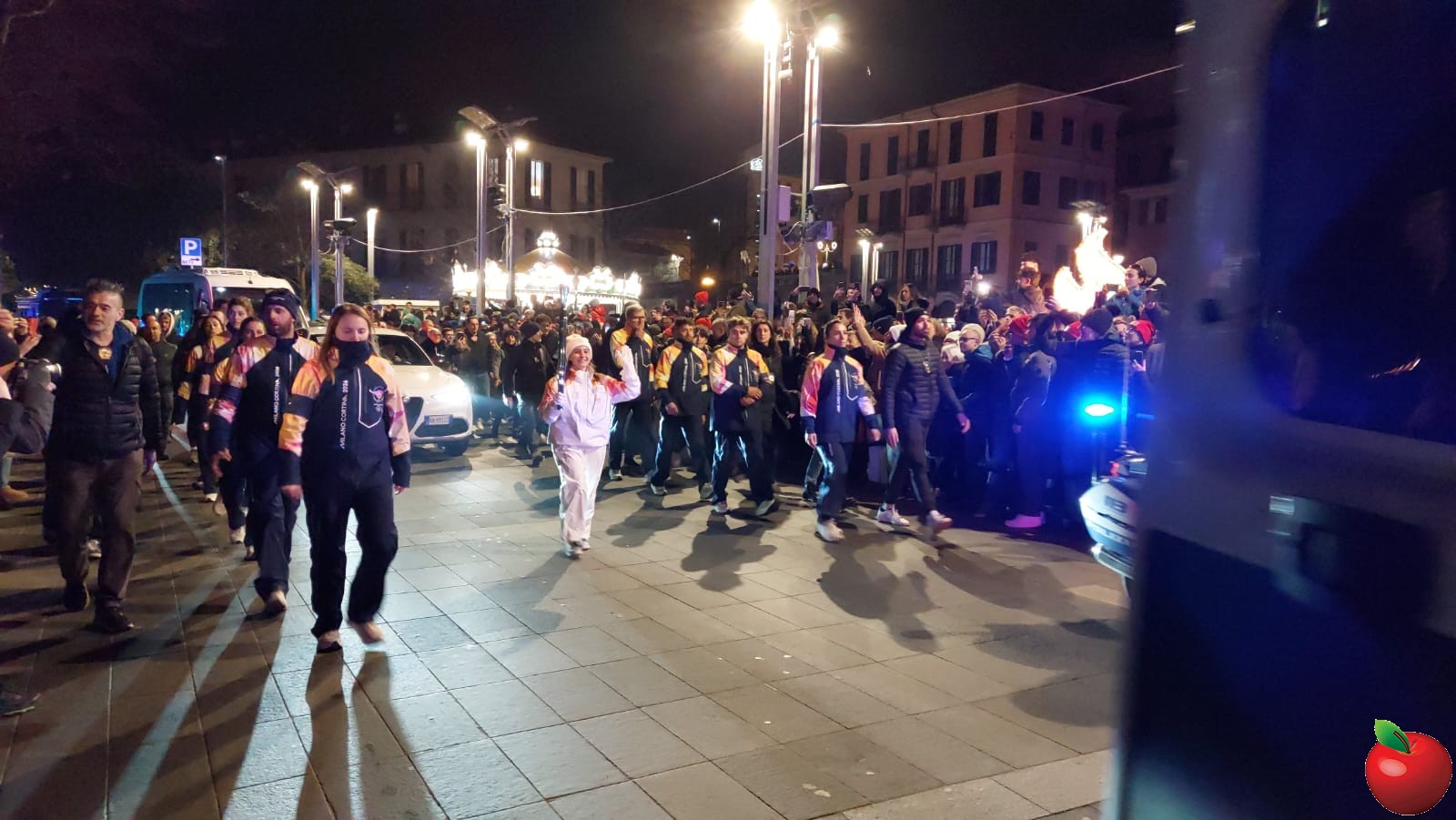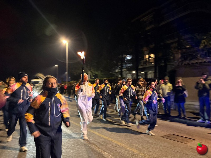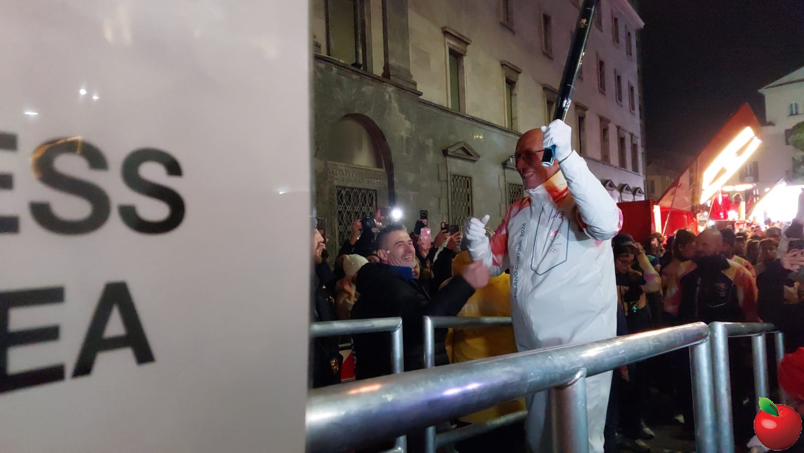 È un fiume umano che accompagna la staffetta: un mare di gente assiepata lungo il percorso, affacciata, in movimento, che acclama la fiamma mentre attraversa il centro cittadino. Il suo ingresso in Piazza Garibaldi è accolto da un boato, da telefoni alzati e sguardi emozionati, in un istante che concentra entusiasmo, orgoglio e partecipazione collettiva.