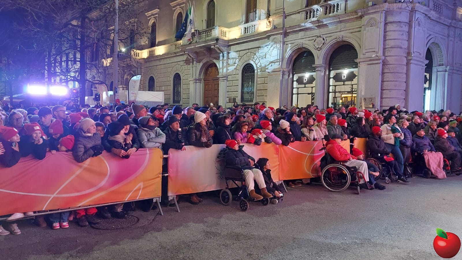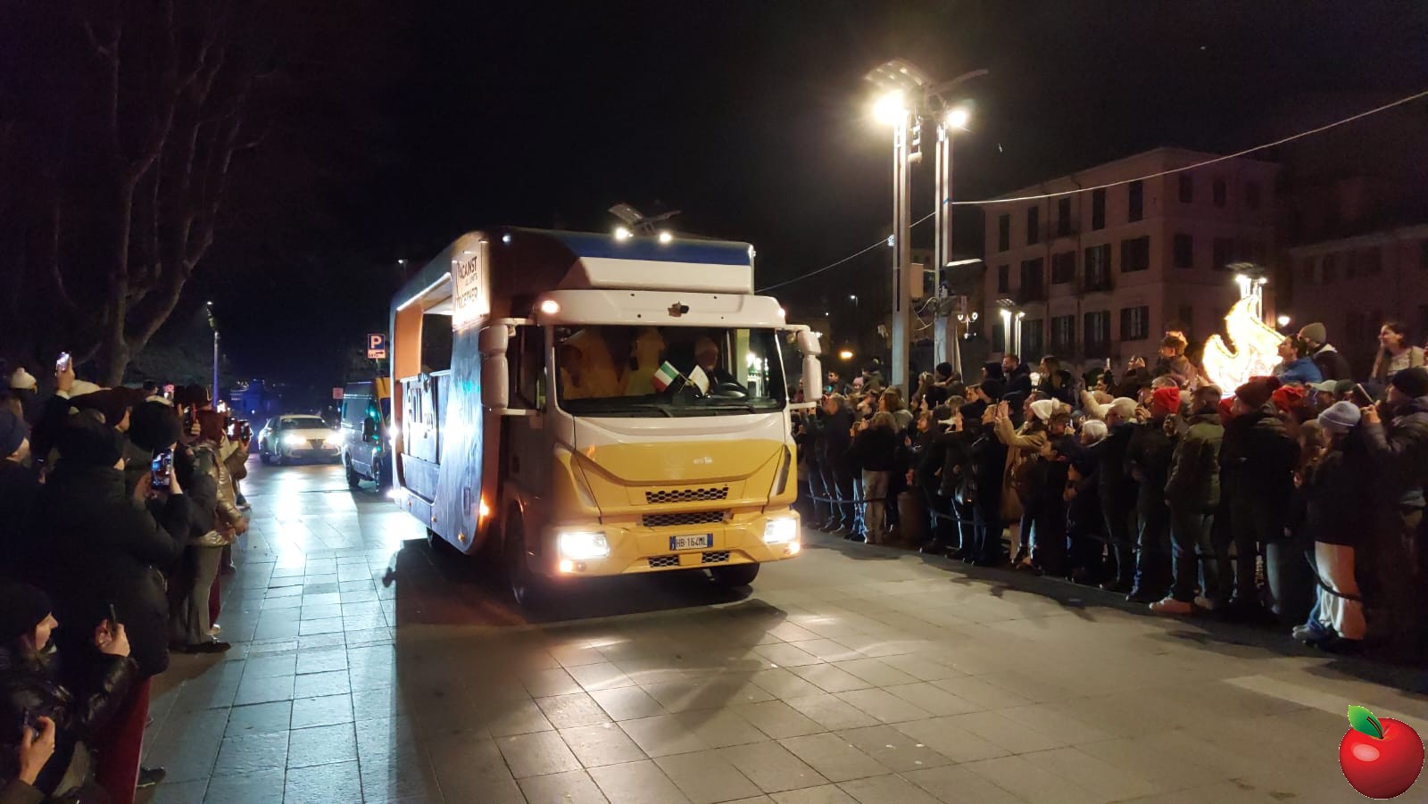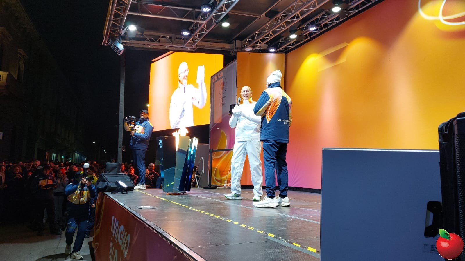 È un fiume umano che accompagna la staffetta: un mare di gente assiepata lungo il percorso, affacciata, in movimento, che acclama la fiamma mentre attraversa il centro cittadino. Il suo ingresso in Piazza Garibaldi è accolto da un boato, da telefoni alzati e sguardi emozionati, in un istante che concentra entusiasmo, orgoglio e partecipazione collettiva.