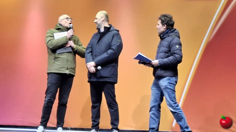 La piazza è calda, viva, attraversata da applausi e cori. Sul palco si alternano voci diverse, storie che raccontano lo sport come esperienza umana prima ancora che agonistica. Eppure, a pochi metri, la scena si arricchisce di un altro elemento: una manifestazione pacifica, “in barricata” davanti alla piazza, sorvegliata dalle forze dell’ordine.
