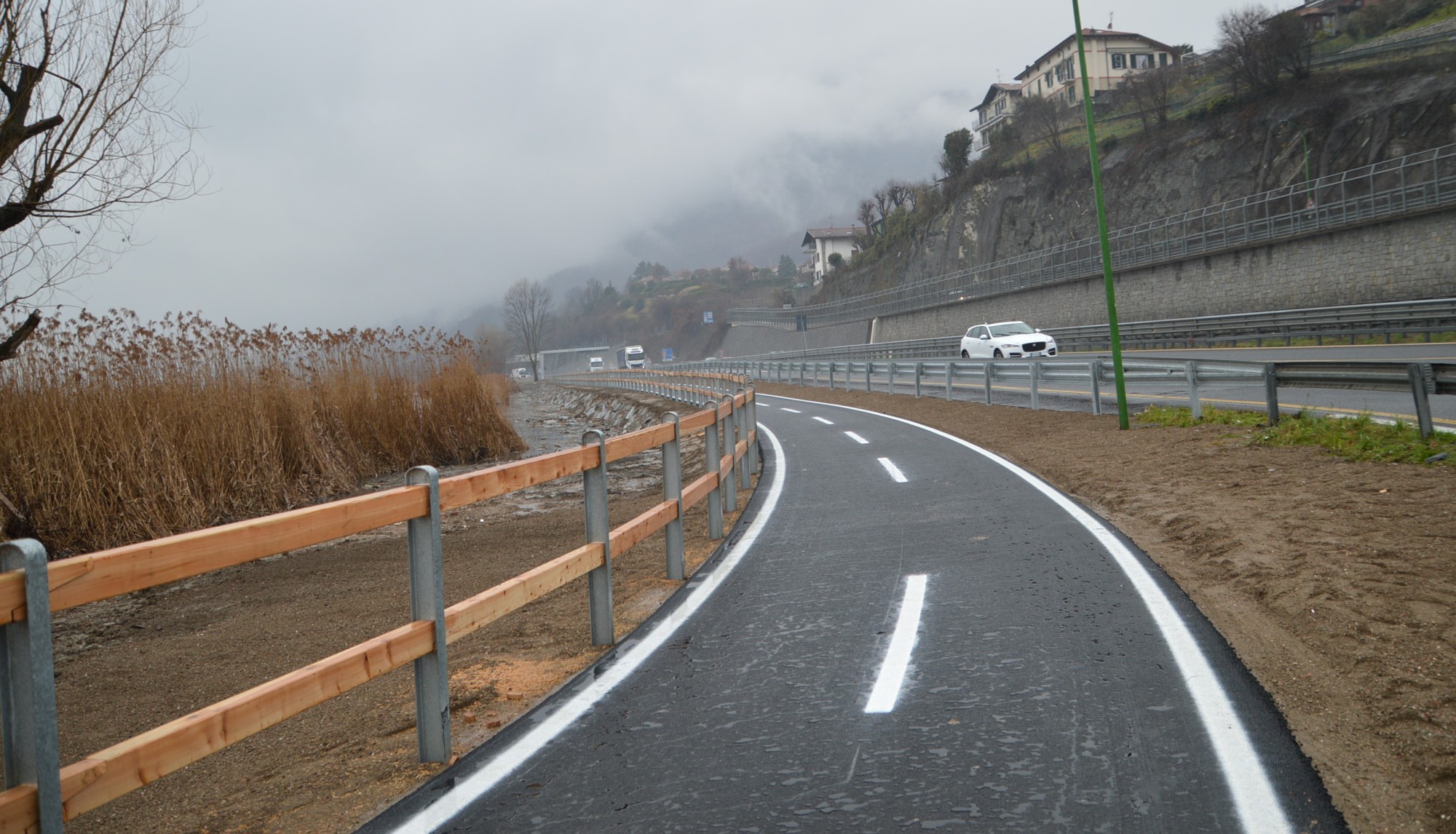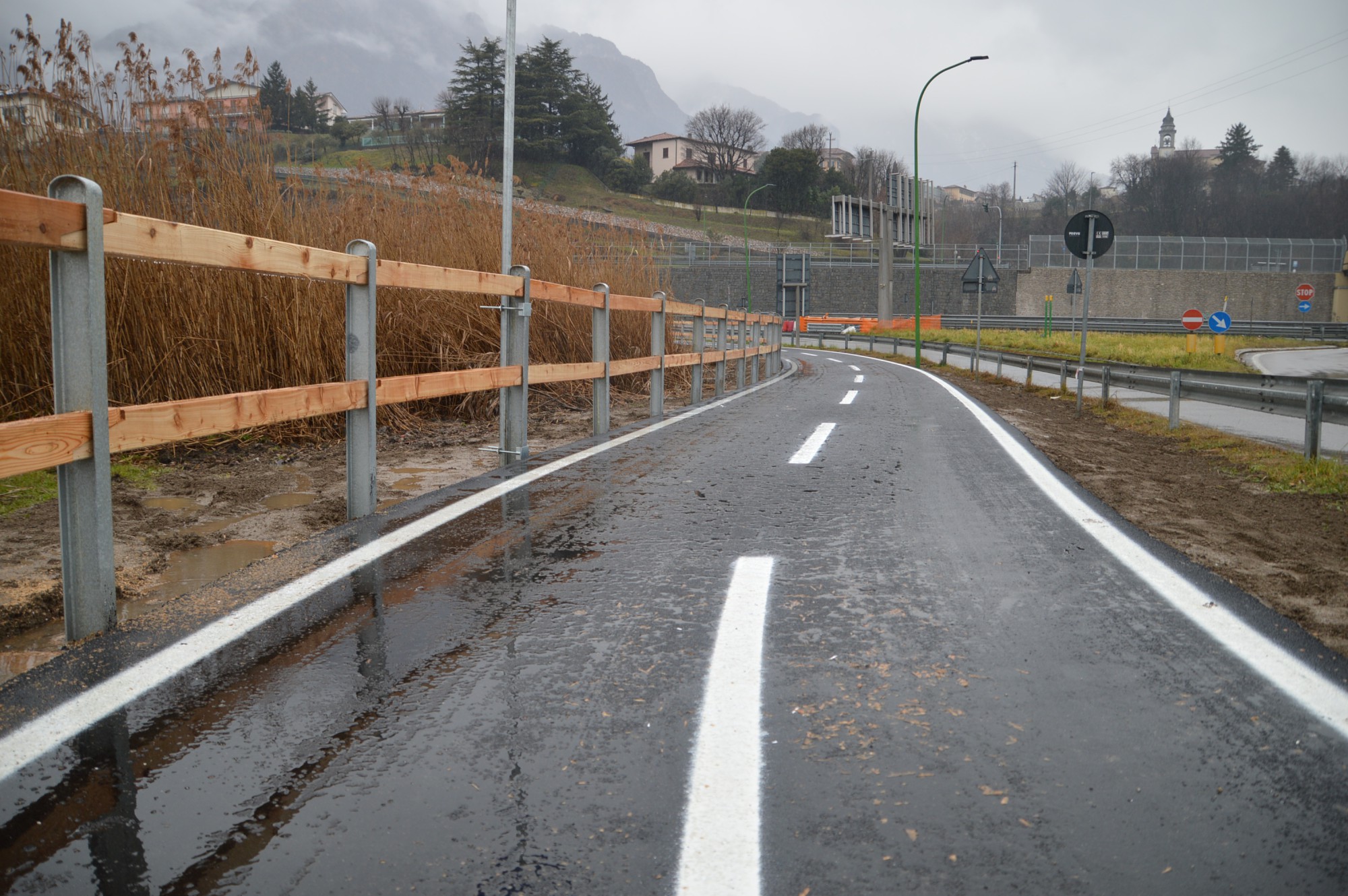 Il tratto di pista che corre a margine della Statale è lungo due chilometri e 400 metri ed è costato 4 milioni e mezzo di euro. Al rifacimento complessivo del percorso e alla posa di parapetti, si è proceduto anche all’innalzamento del terreno, con la realizzazione di una massicciata, nel punto dove si verificavano gli allagamenti. Con i lavori ultimati pressoché in extremis. Ancora ieri, gli operai erano al lavoro per completare il parapetto.