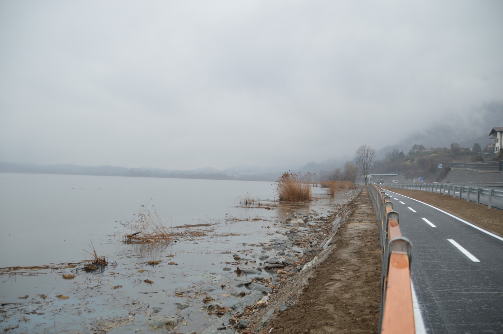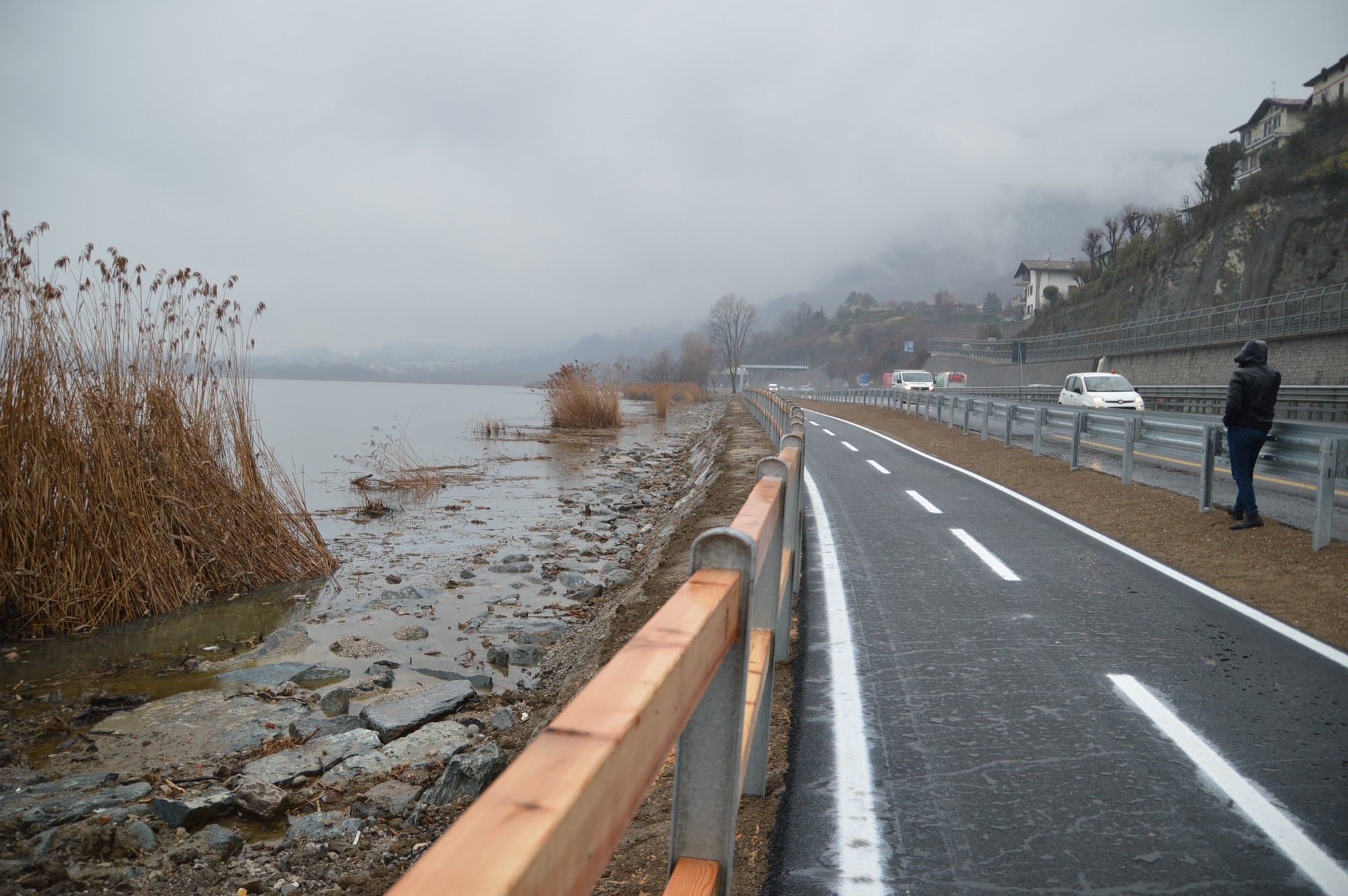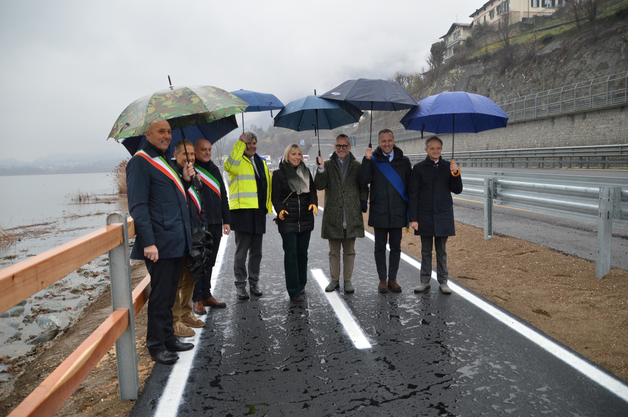 Inaugurato questa mattina il rinnovato tratto di pista ciclabile lungo la strada statale 36 tra il raccordo con la Provinciale per Como e la penisola di Isella, pista che in passato era soggetta a periodici allagamenti quando, in occasione di piogge abbondanti, in quel punto il lago di Annone esondava. Invadendo peraltro anche parte della carreggiata per le auto provenienti da Como.