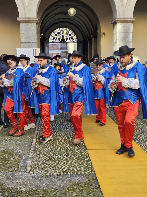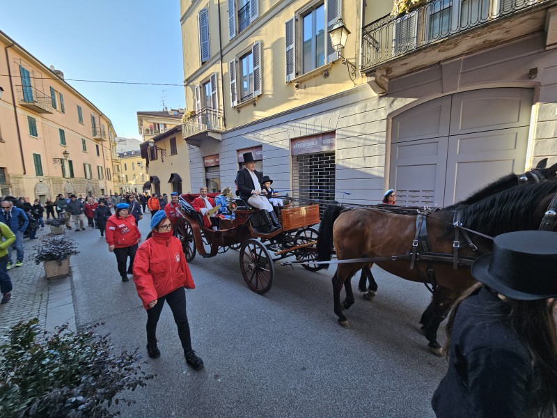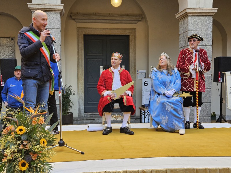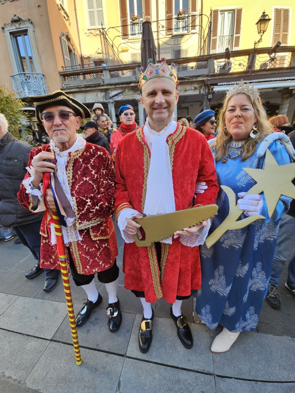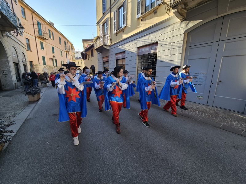 Il corteo è quindi partito da piazza XX Settembre, dove i regnanti e il Gran Ciambellano, accompagnati dalle note della Filarmonica San Giovanni, hanno atteso la carrozza trainata dai cavalli. Da lì la sfilata ha attraversato via Roma, svoltato in via Carlo Cattaneo, percorso via Fratelli Cairoli per poi dirigersi verso il Municipio, tra applausi, musica e curiosi affacciati lungo le vie del centro.