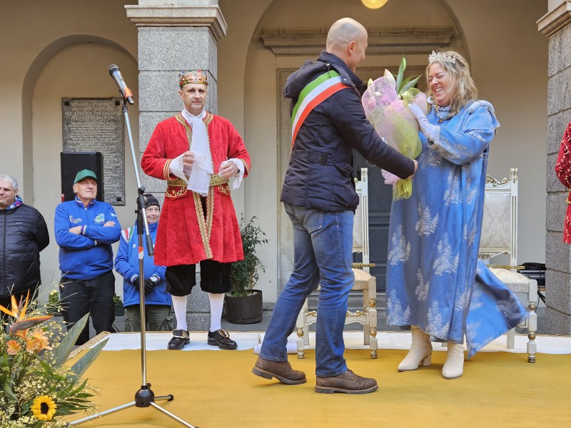 Lecco si è ufficialmente consegnata al Carnevale. Nel pomeriggio di oggi il sindaco Mauro Gattinoni ha affidato simbolicamente le chiavi della città a Re Resegone e Regina Grigna, impersonati da Andrea Vigevano e Giovanna Faccilongo con Rudi Engli quale Gran Ciambellano, dando così il via alla settimana più colorata e “matta” dell’anno.
