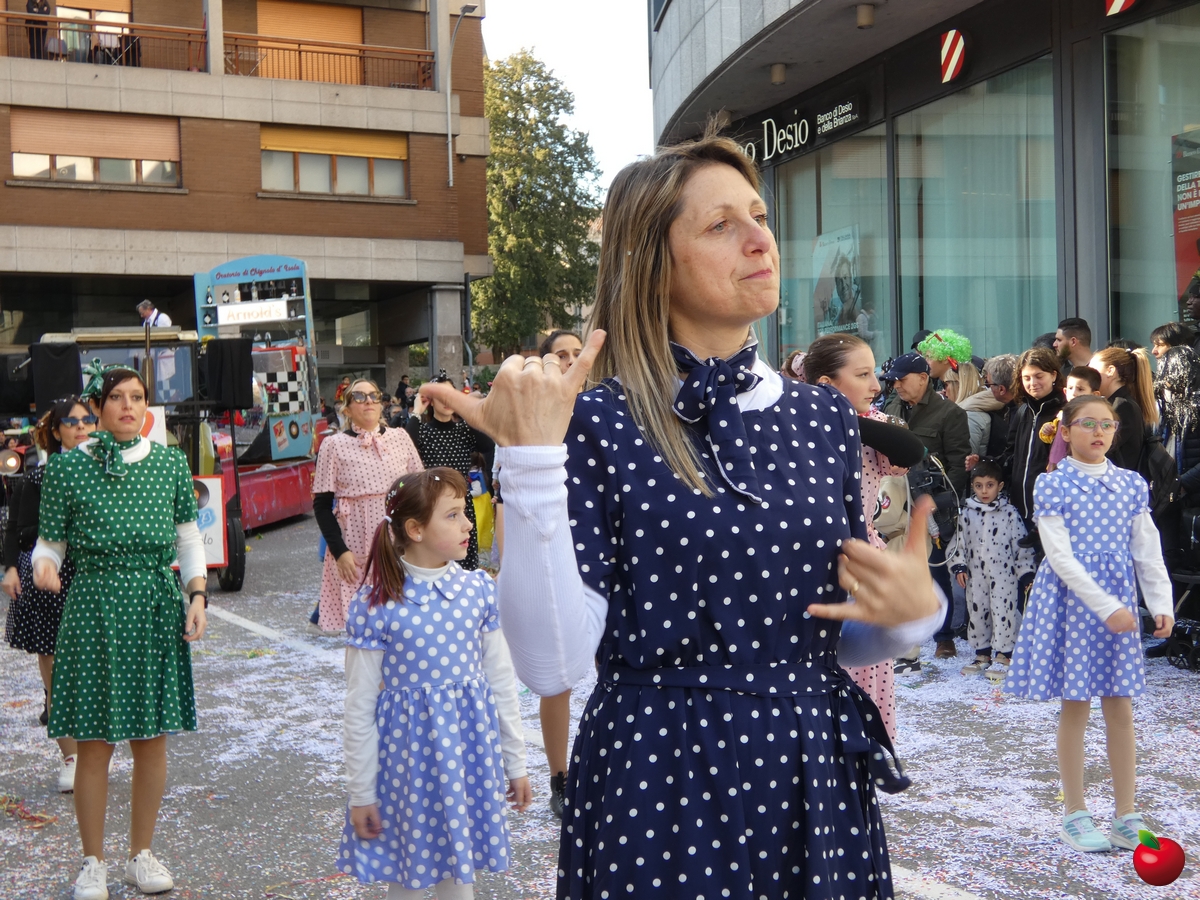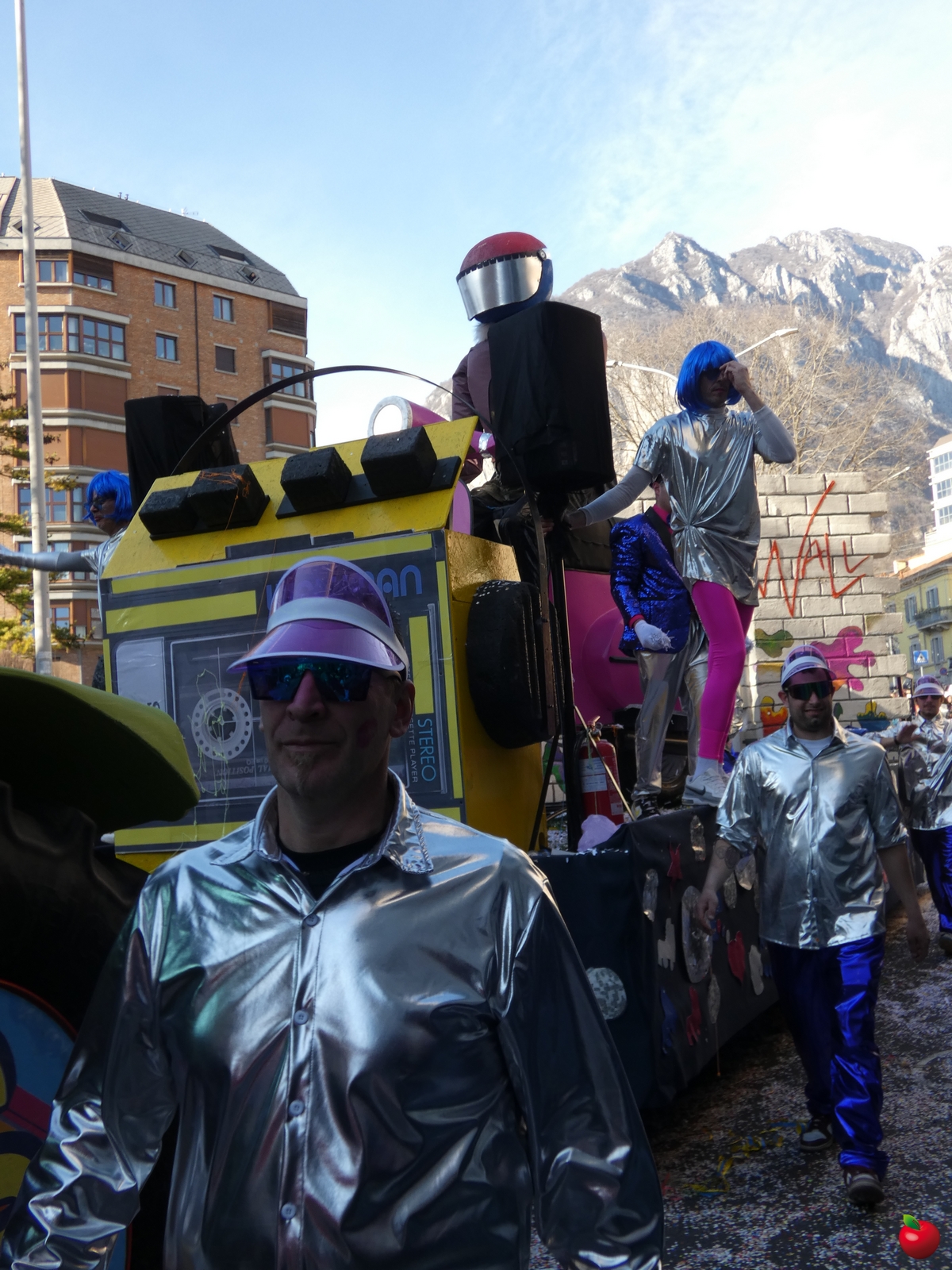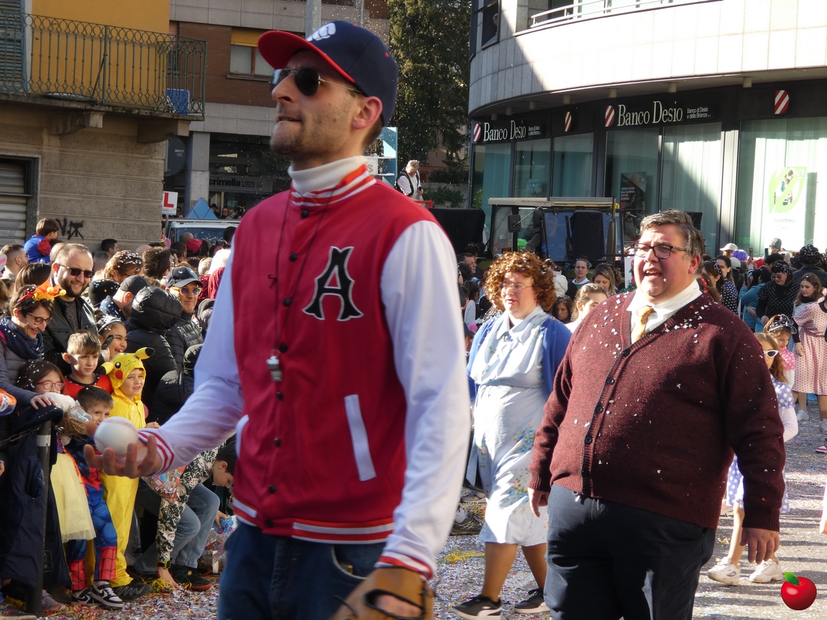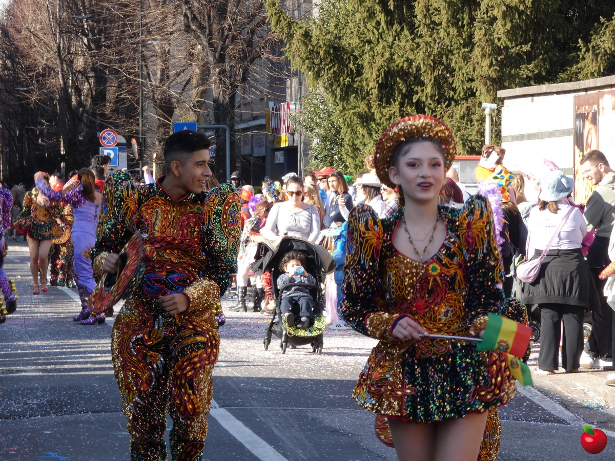 Ma anche la gioia, travolgente, delle formazioni che hanno animato la grande parata, partita dalla Chiesa dei Cappuccini in direzione del piazzale della Piccola, tra folklore locale e danze internazionali, tra majorettes e sbandieratori, con i sudamericani scatenati e carri allegorici effetto macchina del tempo: l'oratorio di Chignolo d'Isola ha evocato infatti i Mitici anni '60 con Happy days e Vivi Dolzago aps negli anni '90, con giubbe metallizzate e parrucche blu.
