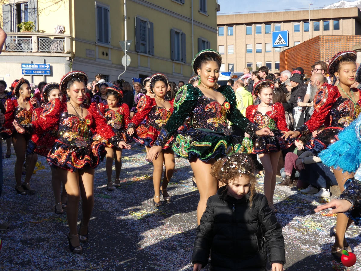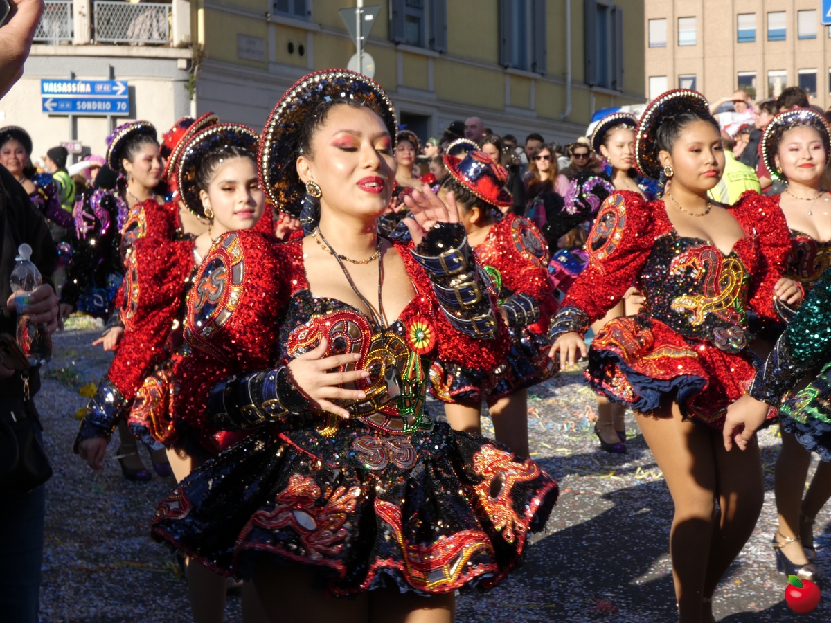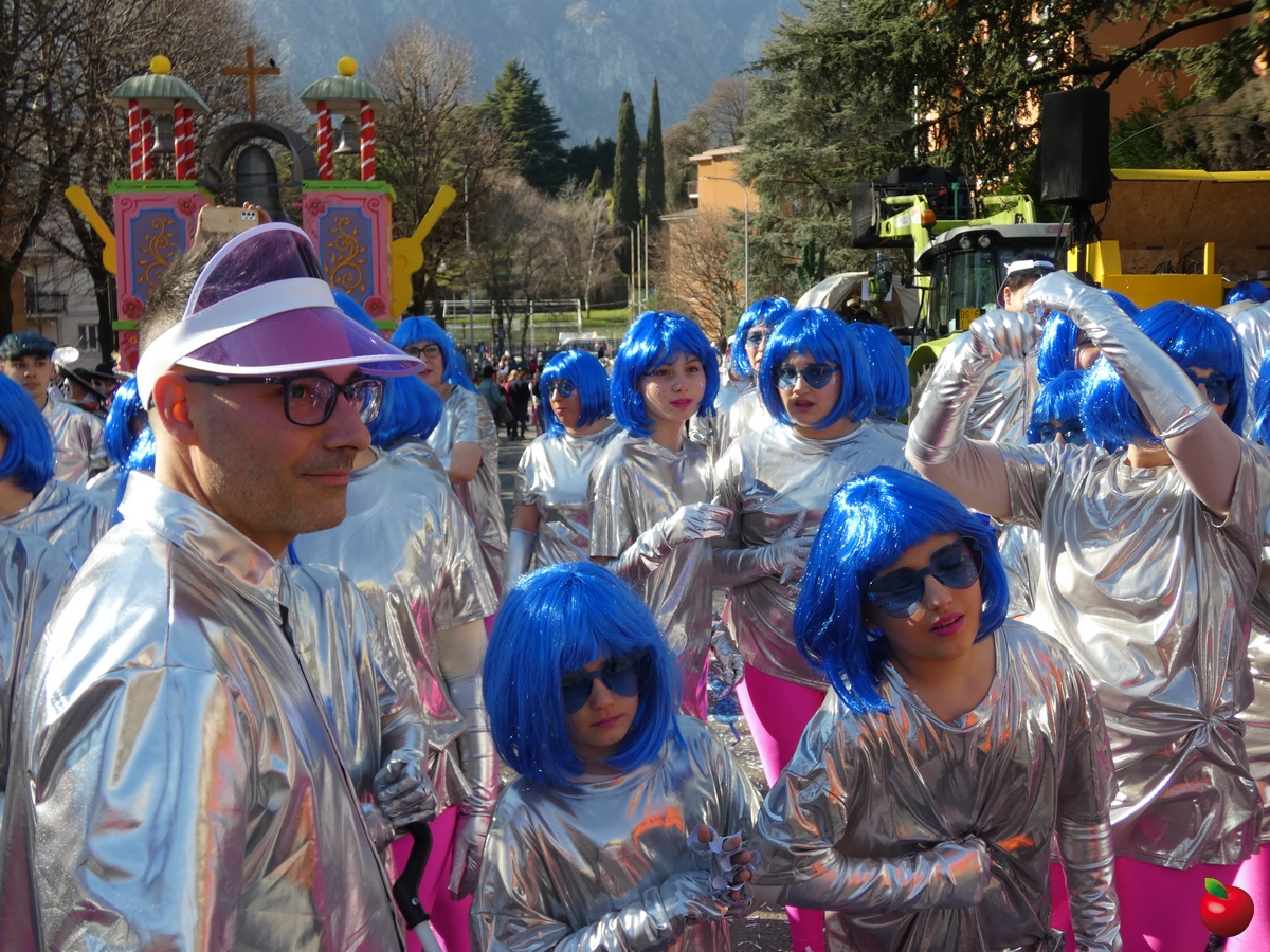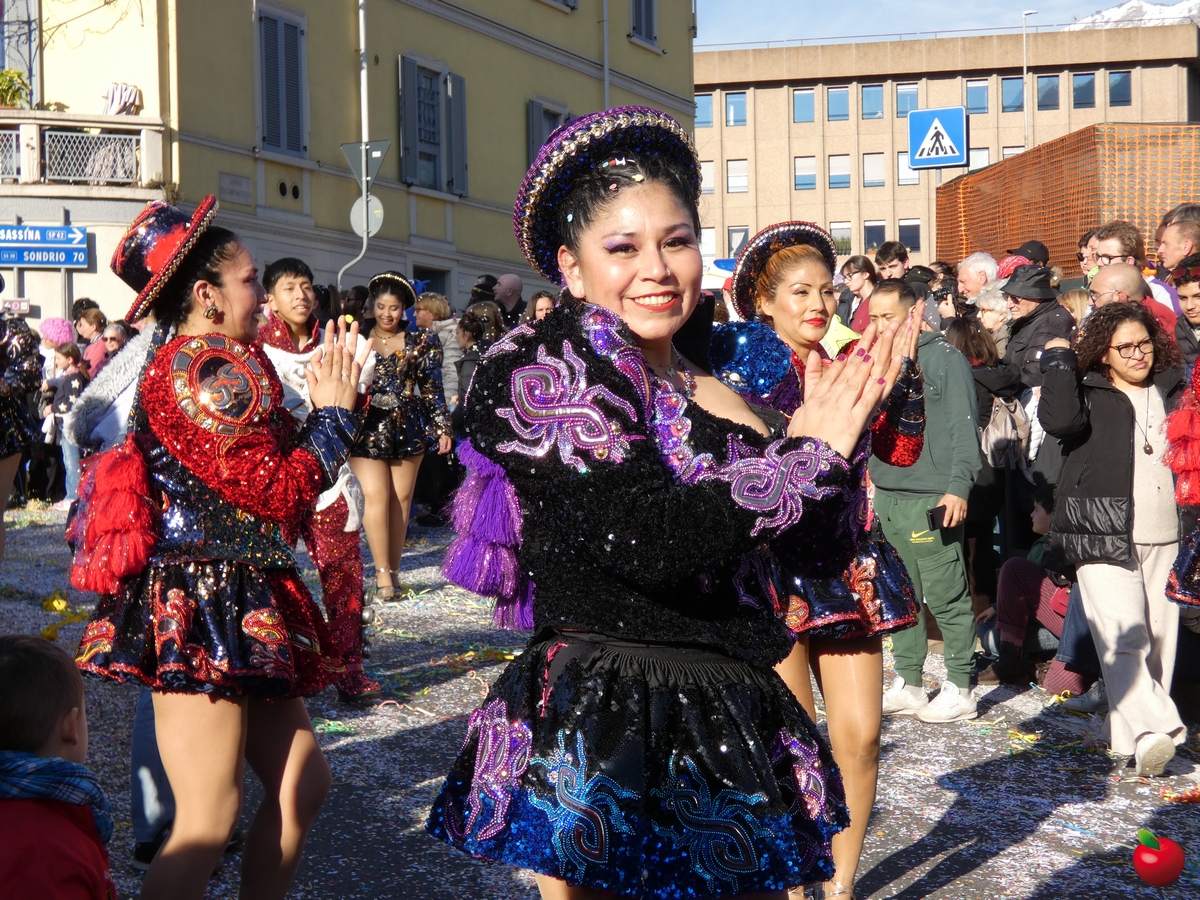 Ma anche la gioia, travolgente, delle formazioni che hanno animato la grande parata, partita dalla Chiesa dei Cappuccini in direzione del piazzale della Piccola, tra folklore locale e danze internazionali, tra majorettes e sbandieratori, con i sudamericani scatenati e carri allegorici effetto macchina del tempo: l'oratorio di Chignolo d'Isola ha evocato infatti i Mitici anni '60 con Happy days e Vivi Dolzago aps negli anni '90, con giubbe metallizzate e parrucche blu.