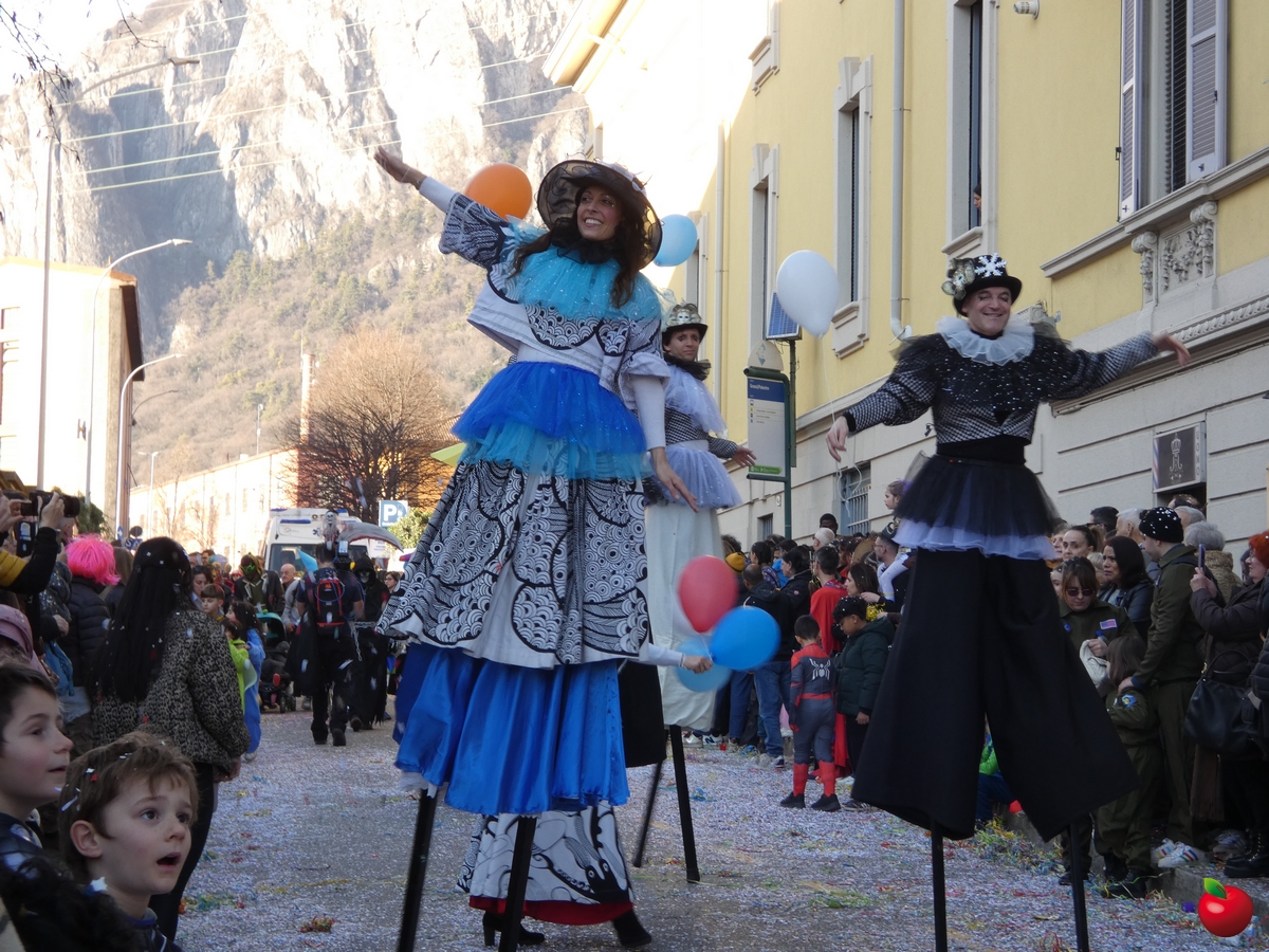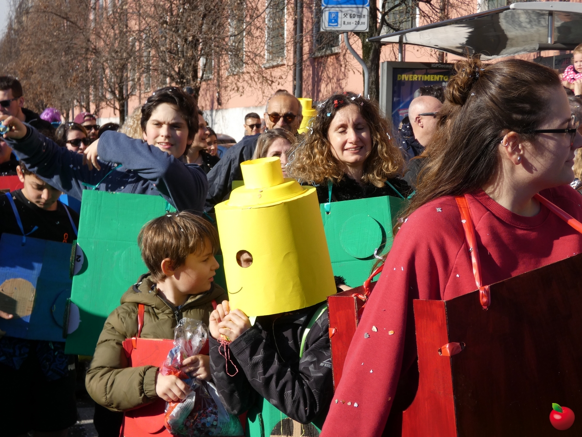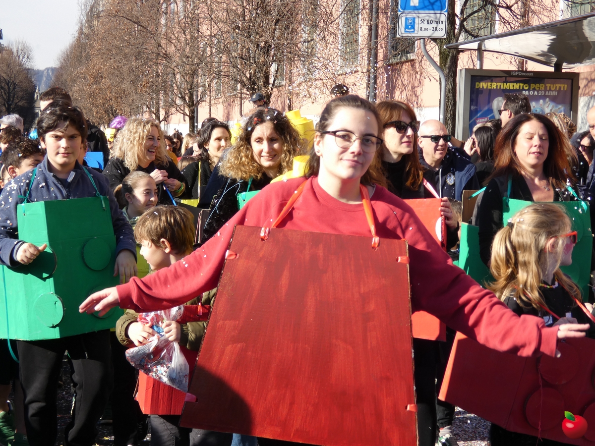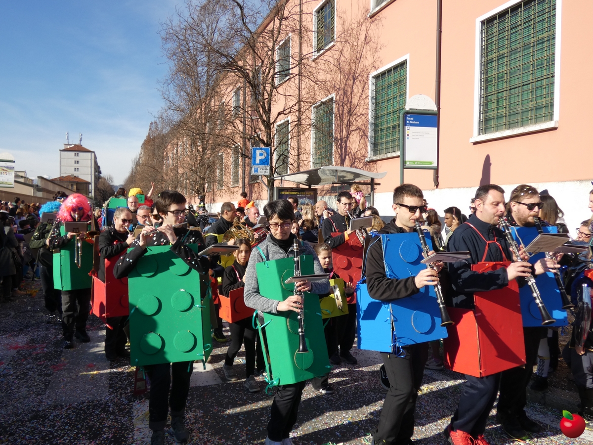 In corteo, giusto per citare i gruppi a chilometro zero, anche il San Luigi della parrocchia del centro cittadino, con travestimenti a tema “furto al Louvre” - tra quadri, ladri e l'iconica piramide simbolo del museo parigino - e la Filarmonica Giuseppe Verdi con i membri della Comunità Pastorale Lecco Alta in formato mattoncino.