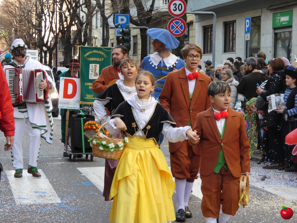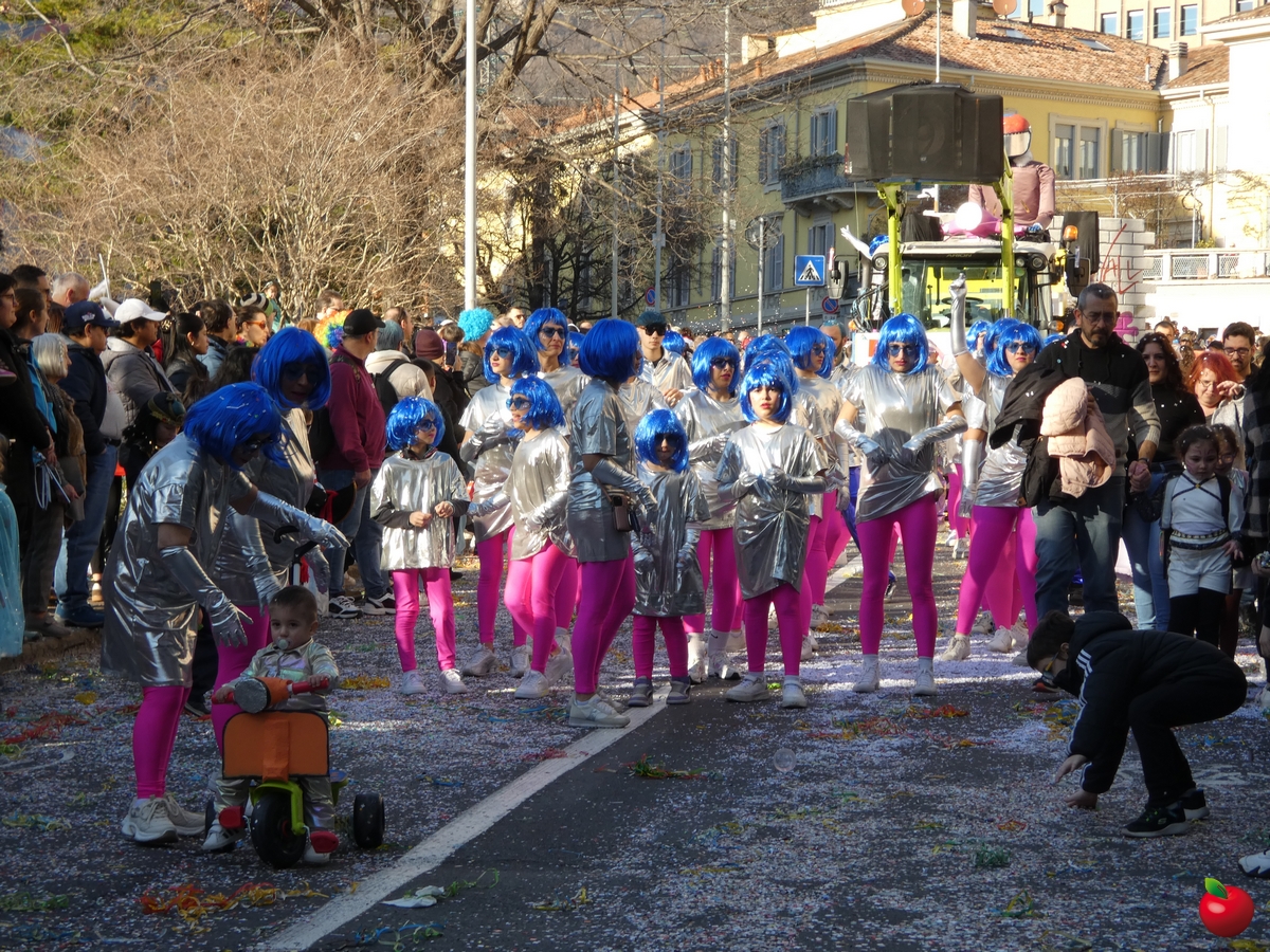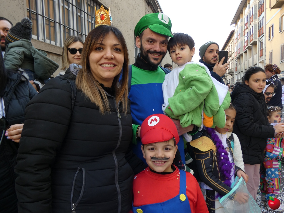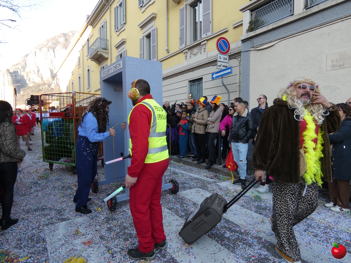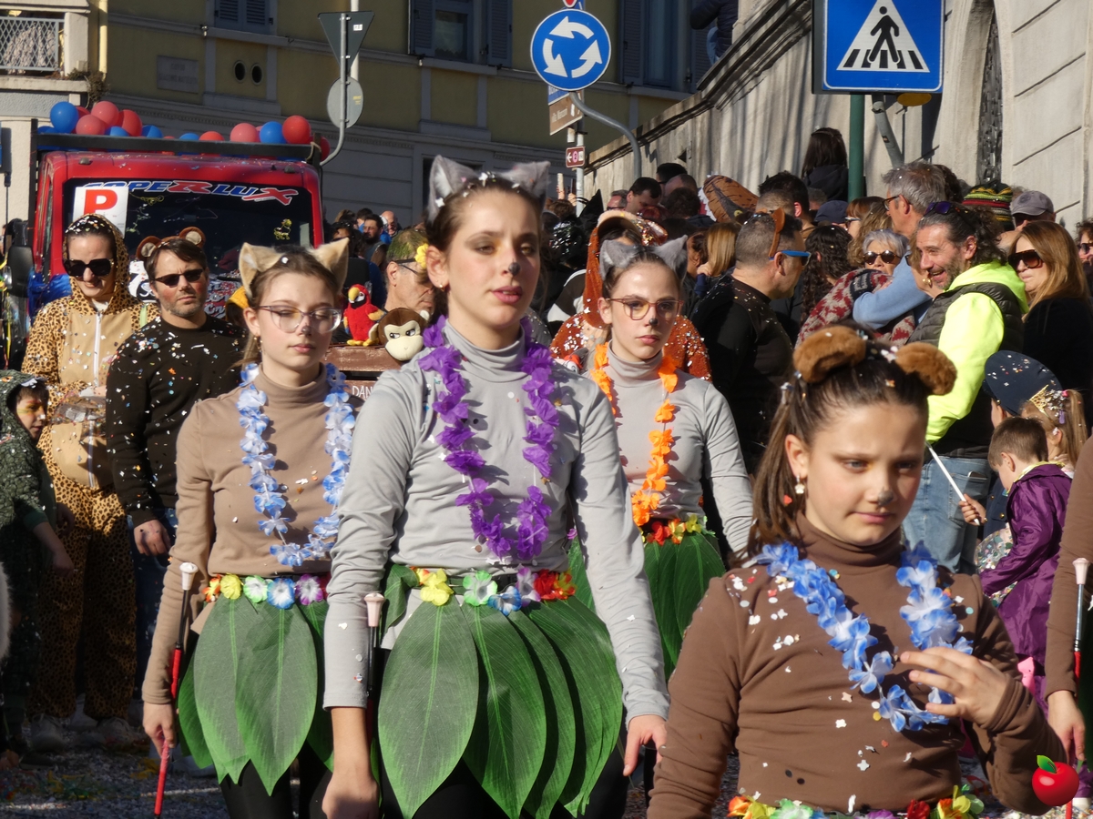 In corteo, giusto per citare i gruppi a chilometro zero, anche il San Luigi della parrocchia del centro cittadino, con travestimenti a tema “furto al Louvre” - tra quadri, ladri e l'iconica piramide simbolo del museo parigino - e la Filarmonica Giuseppe Verdi con i membri della Comunità Pastorale Lecco Alta in formato mattoncino.