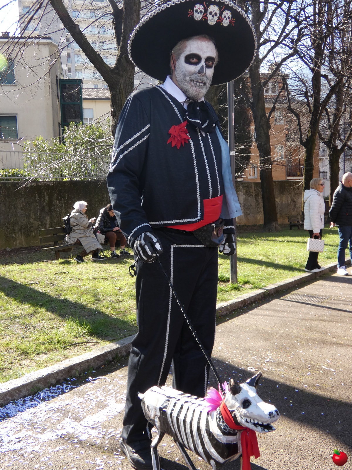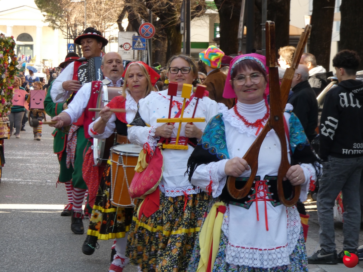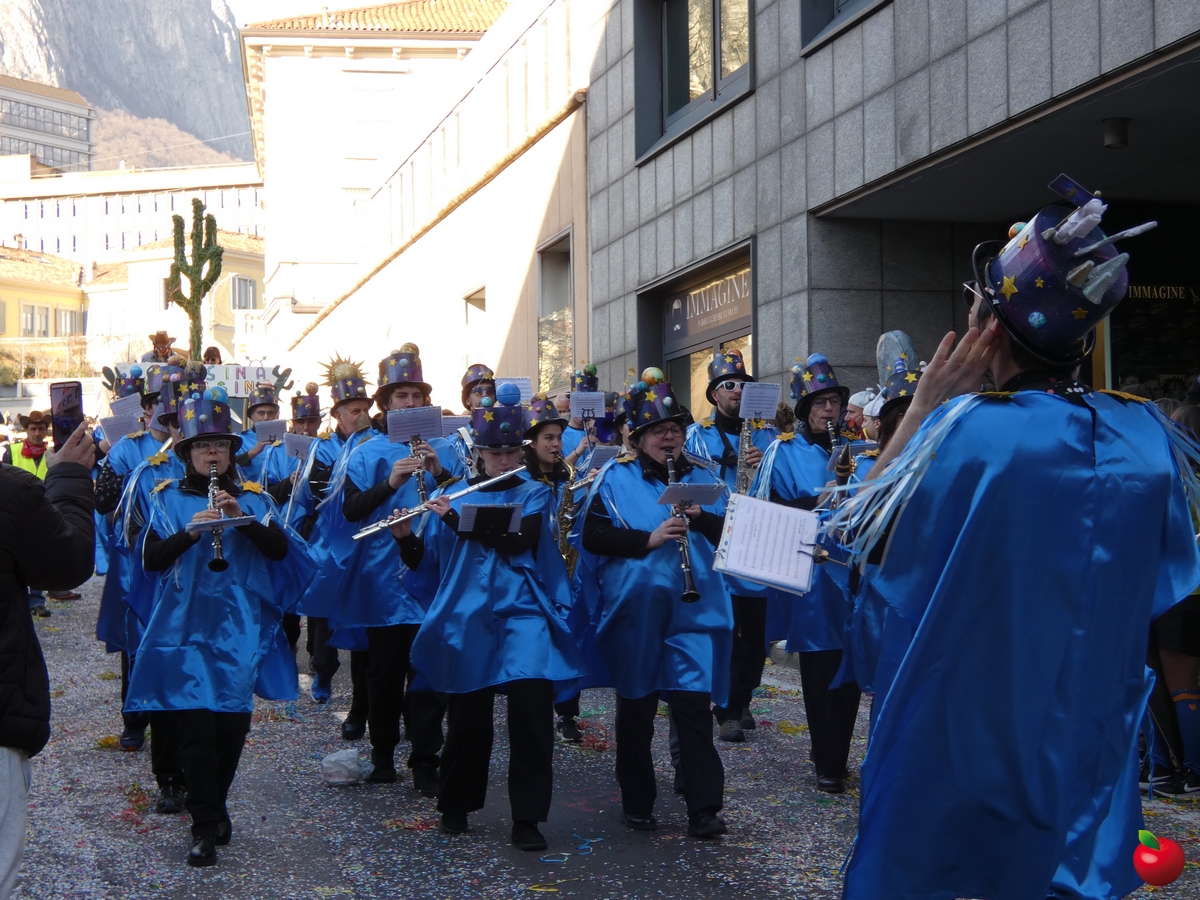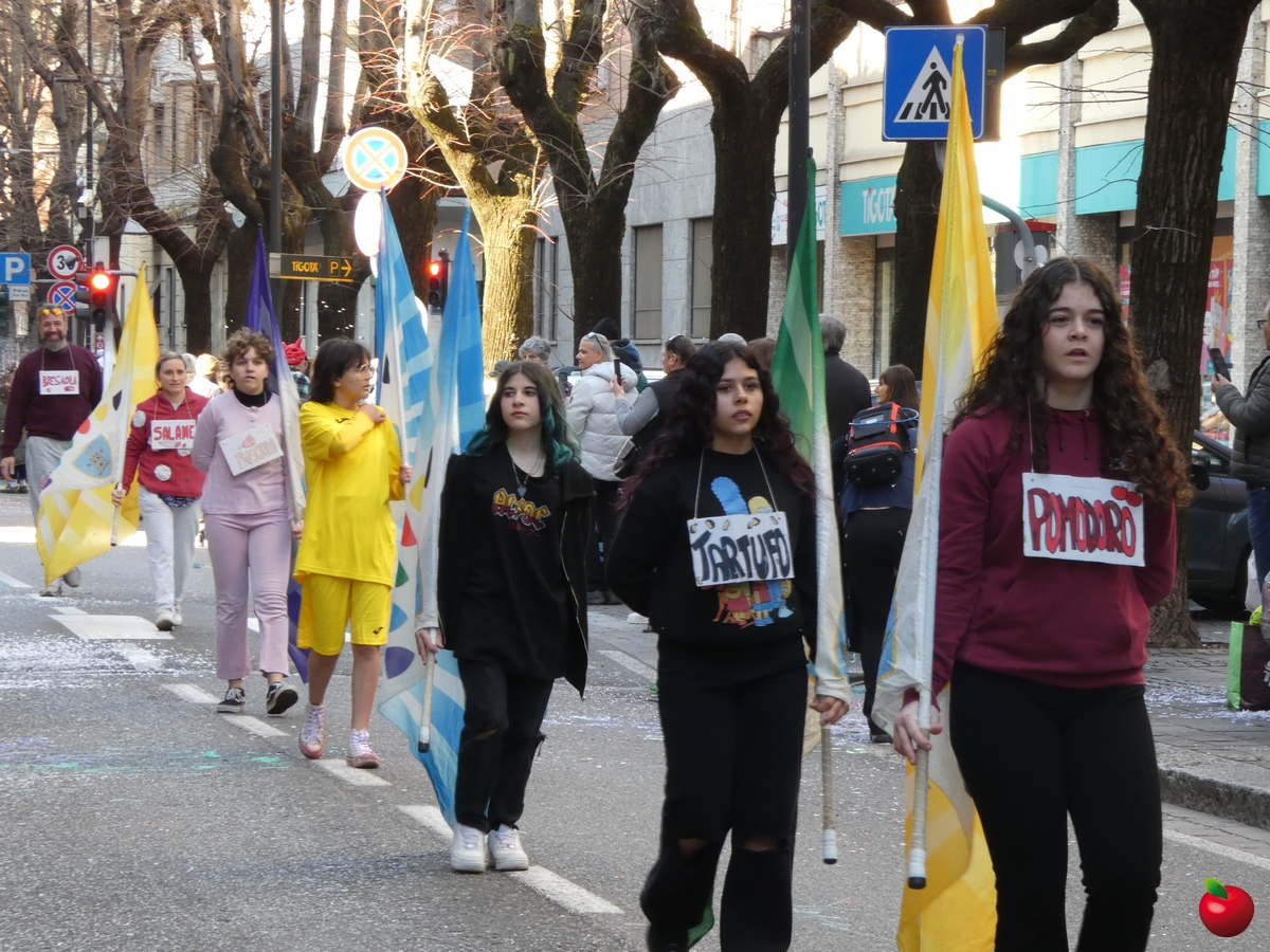In corteo, giusto per citare i gruppi a chilometro zero, anche il San Luigi della parrocchia del centro cittadino, con travestimenti a tema “furto al Louvre” - tra quadri, ladri e l'iconica piramide simbolo del museo parigino - e la Filarmonica Giuseppe Verdi con i membri della Comunità Pastorale Lecco Alta in formato mattoncino.