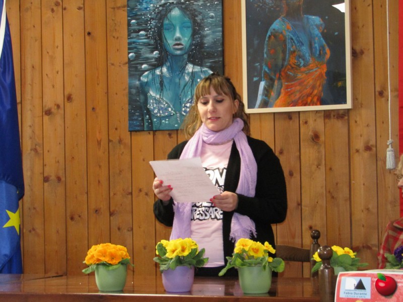Oltre ai componimenti in versi, la mostra allestita in occasione dell’8 marzo comprende diverse opere pittoriche (dipinte su tela, su carta, in serigrafia e anche su un particolare tessuto proveniente dal Centro America, e in particolare dalla tribù Kuna di Panama) e due sculture (una delle quali è stata realizzata dalla giovanissima artista Angelina Calcagno), per un totale di oltre trenta creazioni.