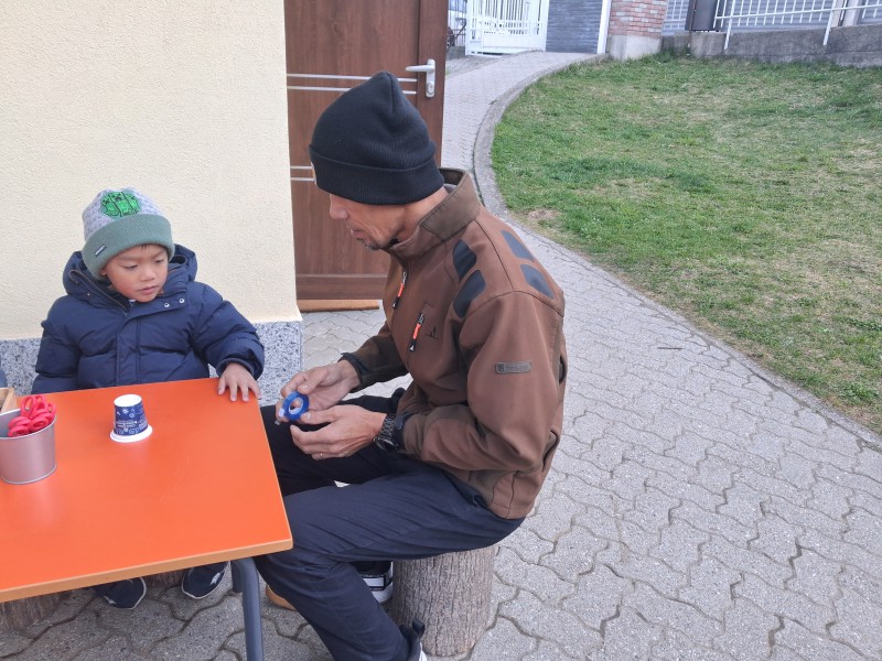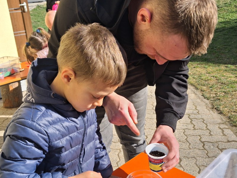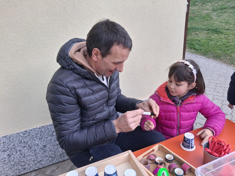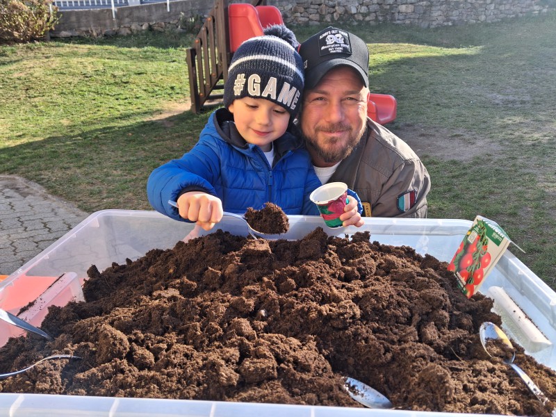Al loro arrivo, padri e figli sono stati accolti in un’atmosfera festosa all’“angolo dei vasetti”: qui, ognuno ha potuto decorare il proprio contenitore, destinato ad accogliere la terra e i semi che, un giorno, diventeranno le piantine dell’orto. Dopo aver preparato i vasetti, si è passati alla semina: pomodori o piselli, scelti liberamente dai piccoli, secondo i propri gusti. Tutto sono stati poi sistemati sui davanzali delle finestre e delicatamente annaffiati.